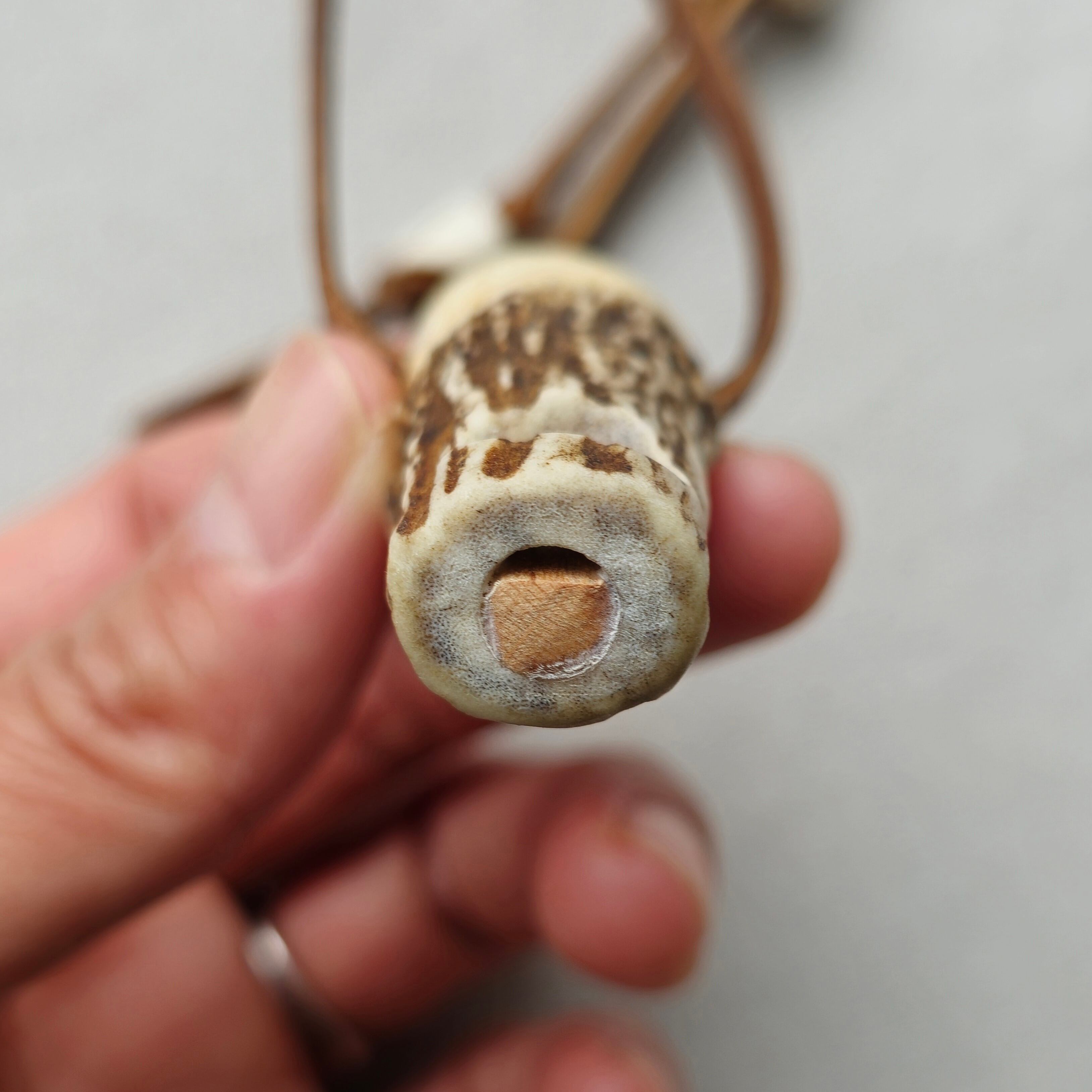 鹿の角笛は、木材や金属とは少し違った独特の響きを持っています。