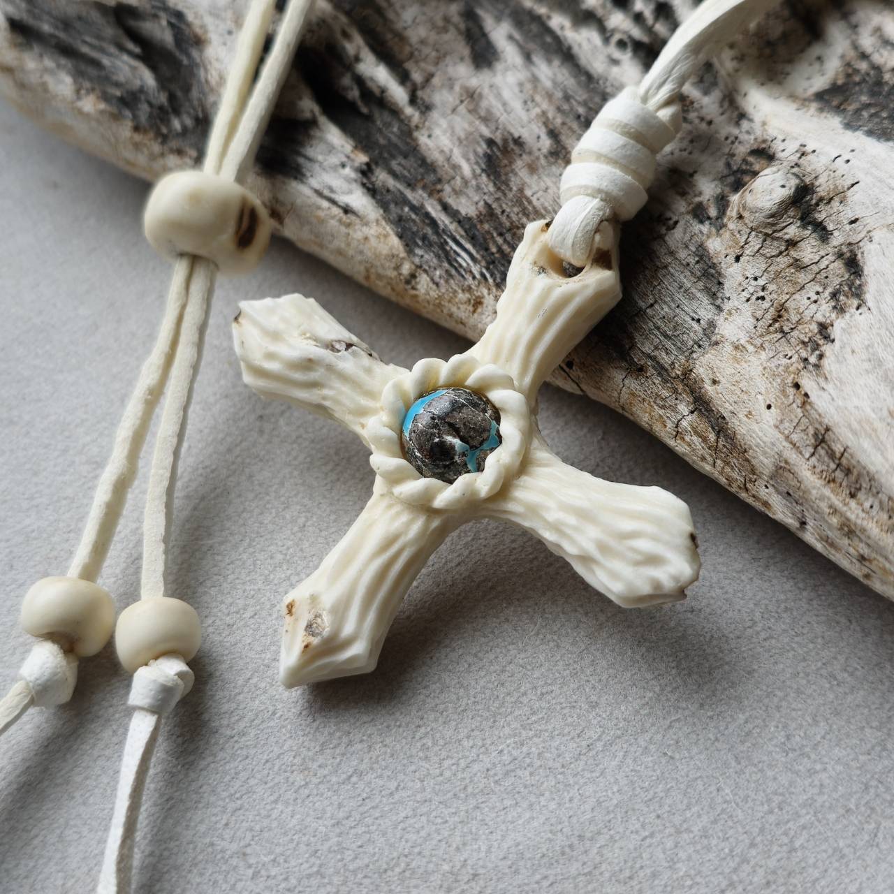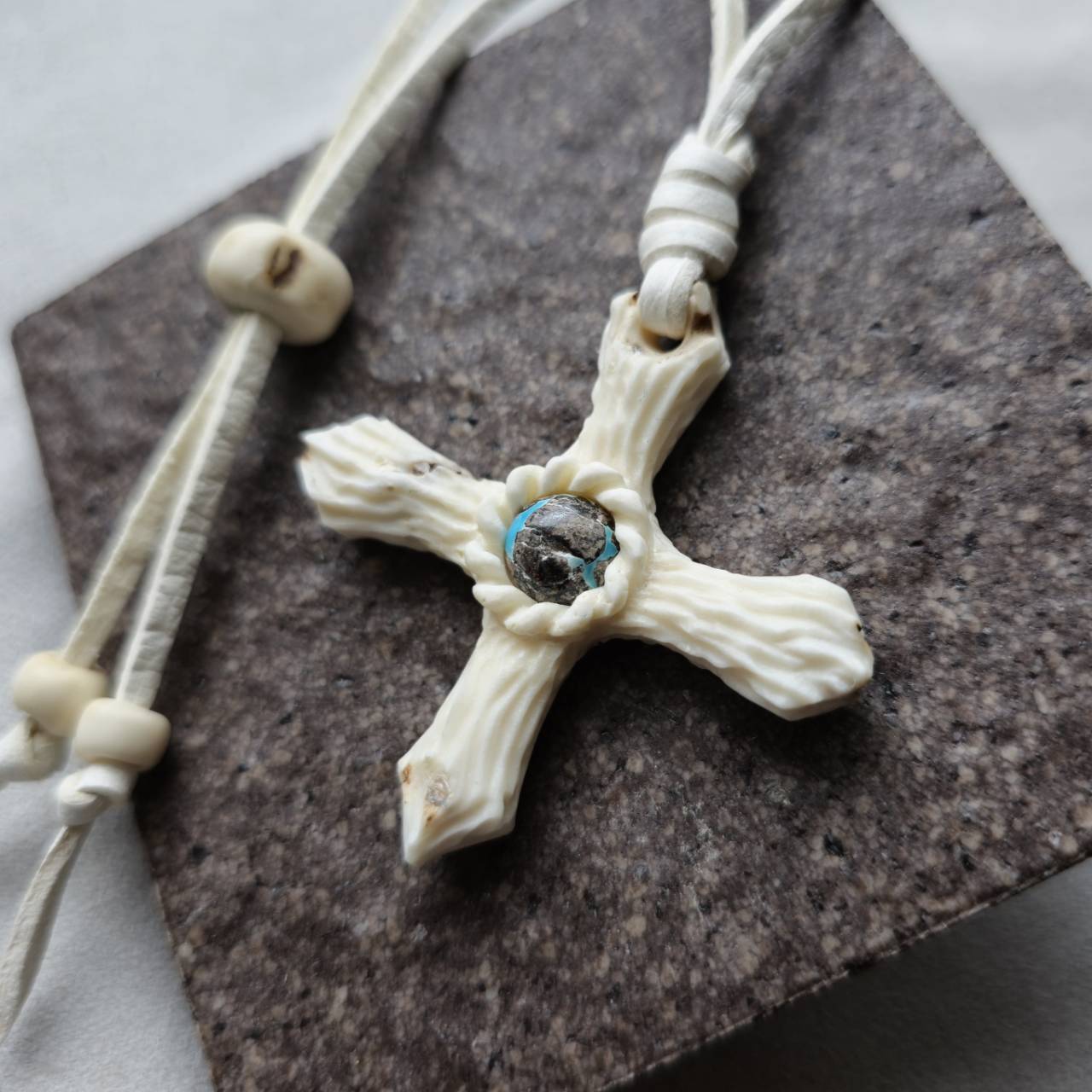 鹿の角 ペルシアンターコイズのクロスペンダント#2