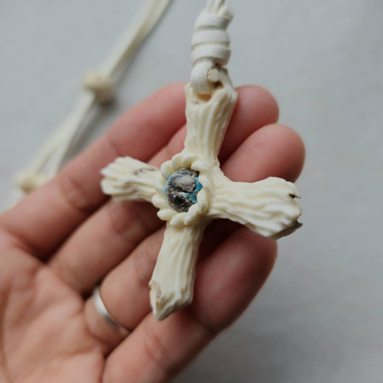 こちらは【鹿の角 ペルシアンターコイズのクロスペンダント#2 】になります。