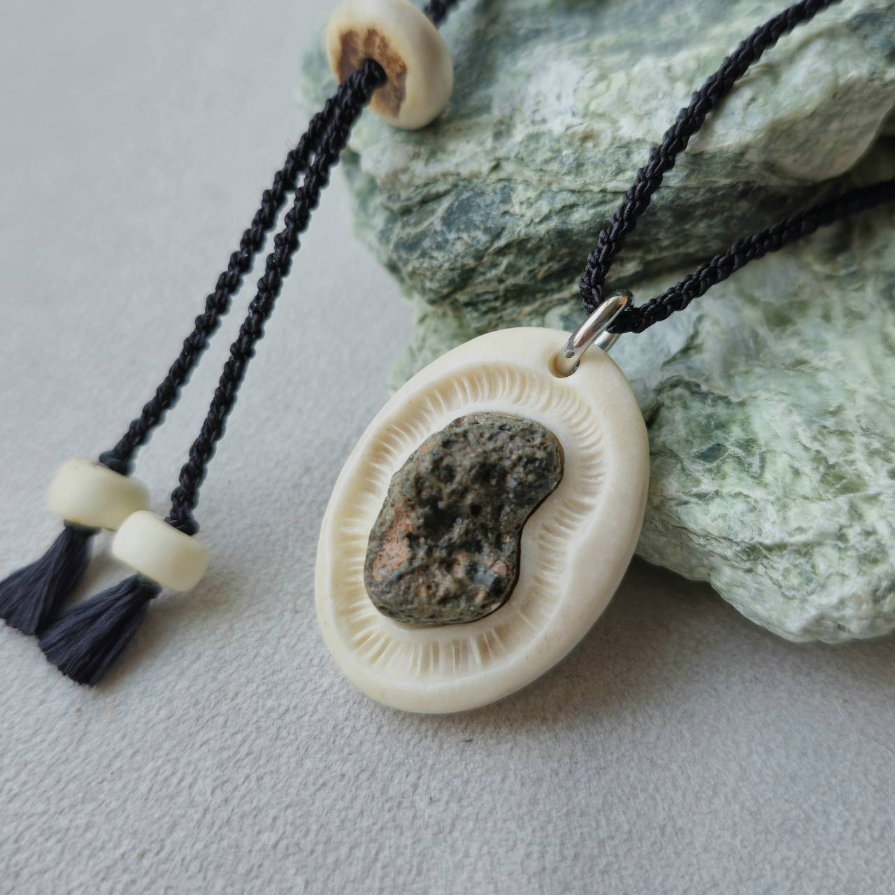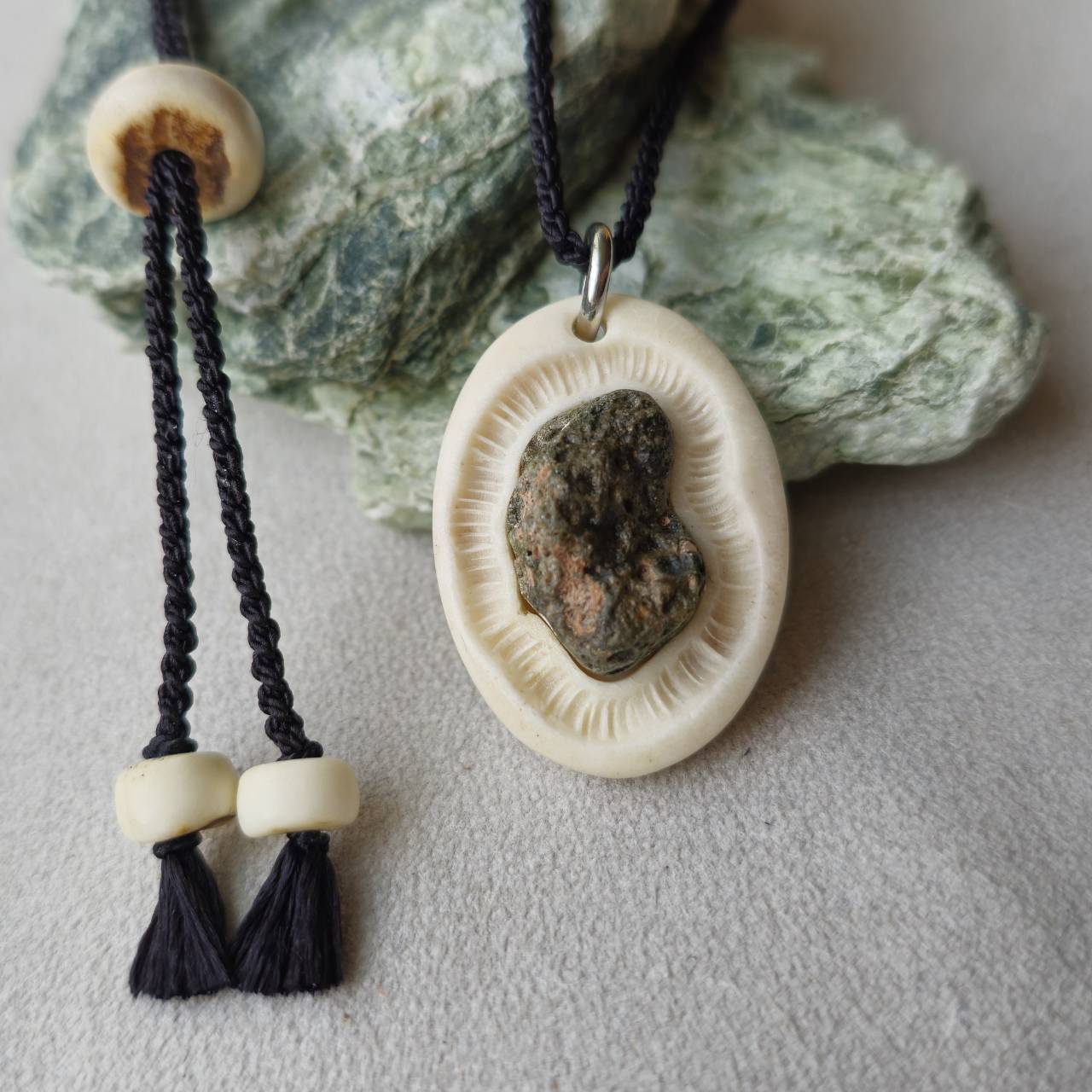 北海道奥尻島で「身に着ける自然」をテーマに、鹿の角や水牛の角、虹彩珊瑚、天然石などを使用してアクセサリーや小物を制作しています。