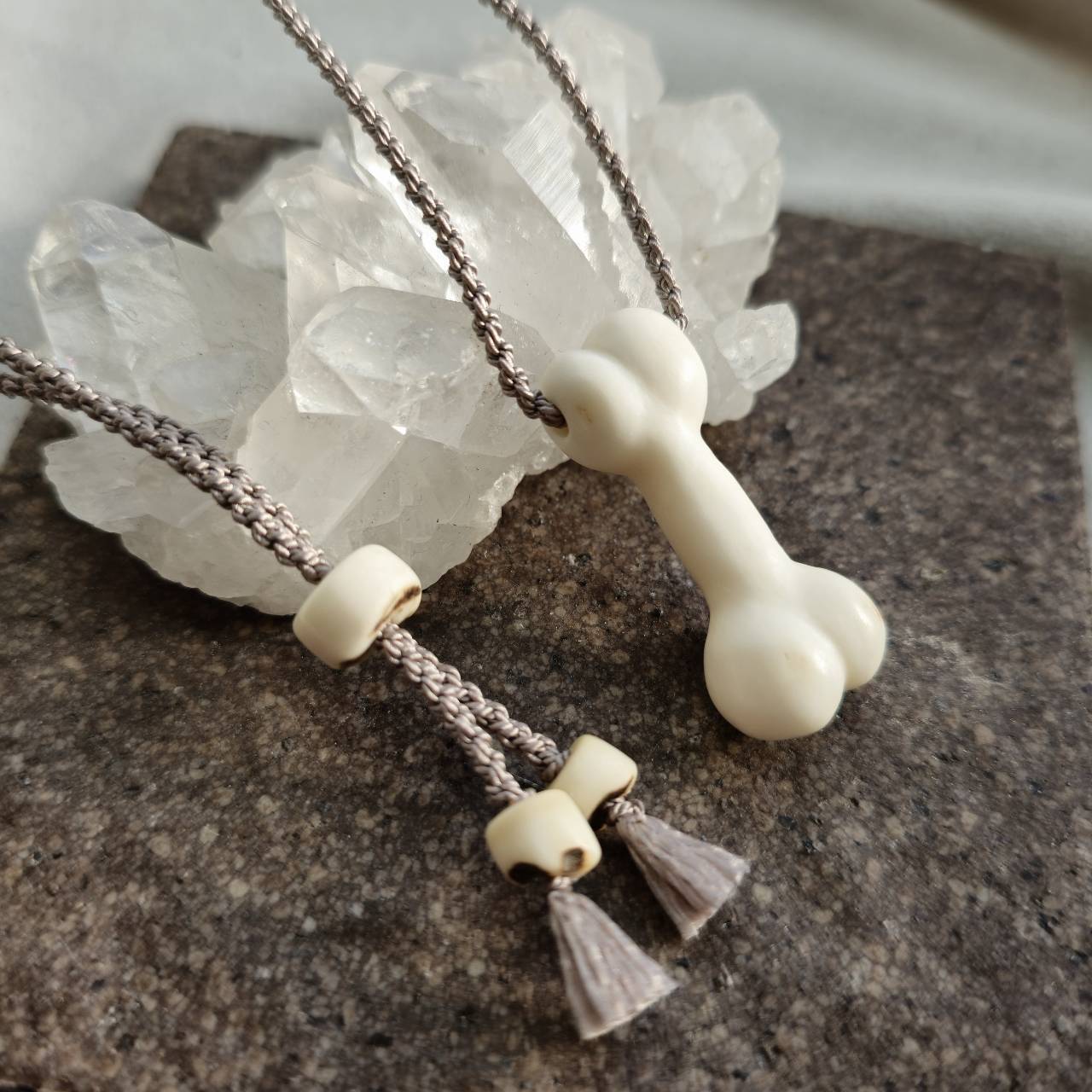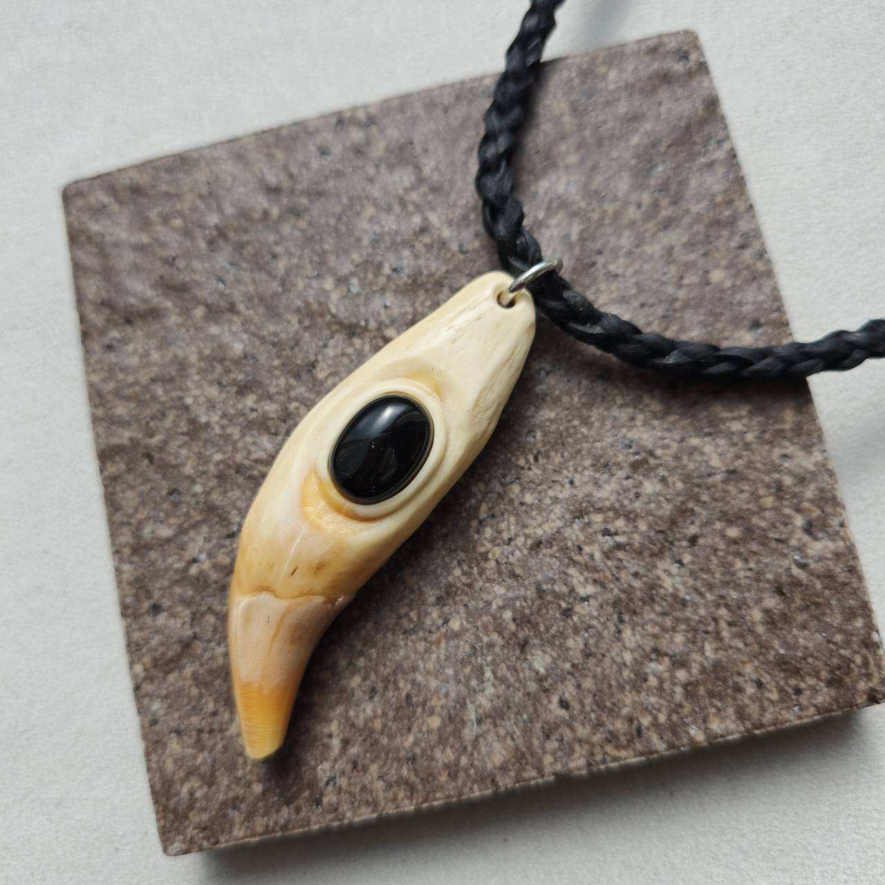 ■材質 ヒグマの牙、鹿の角、鹿革紐