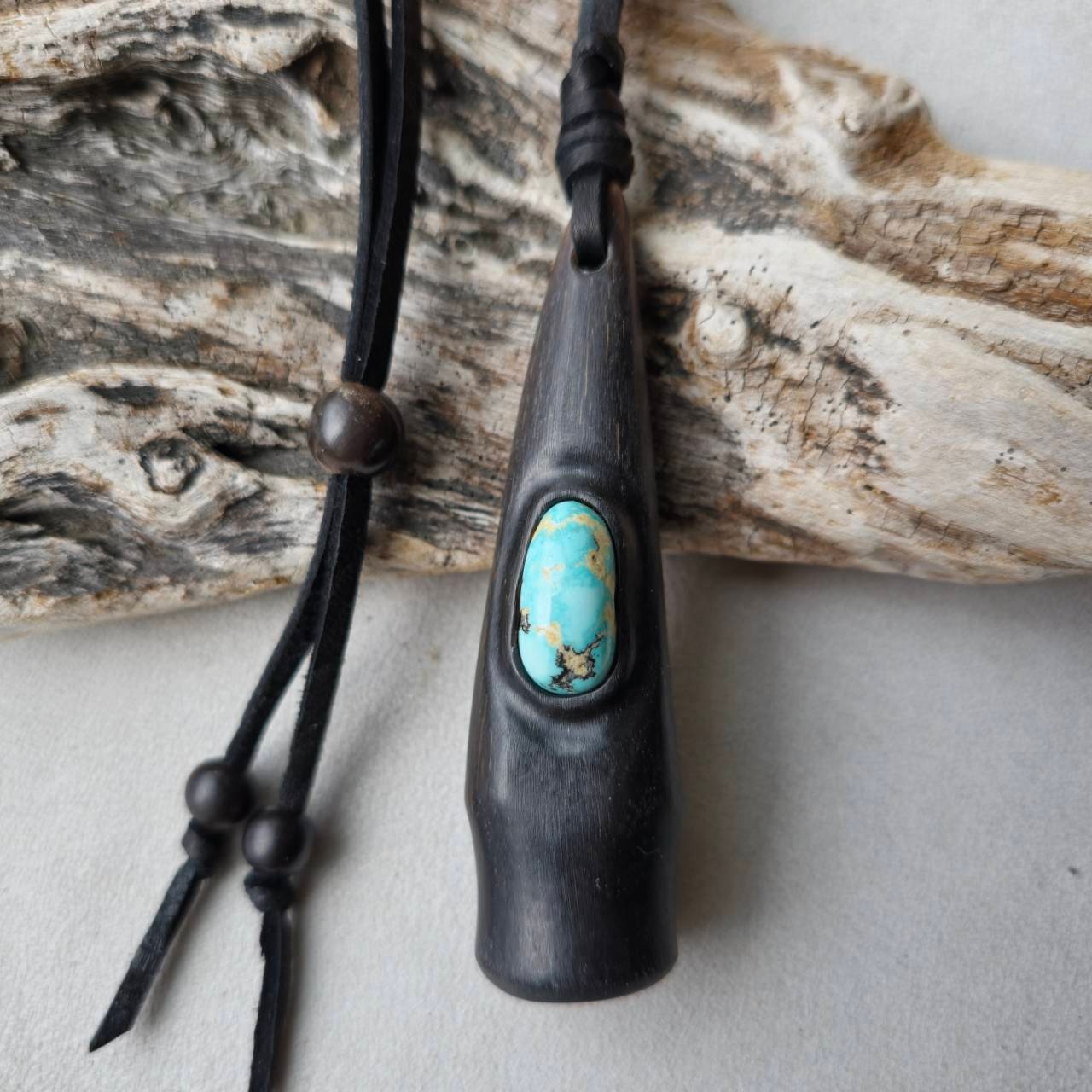 こちらは【水牛の角 ターコイズの角笛ペンダント】になります。