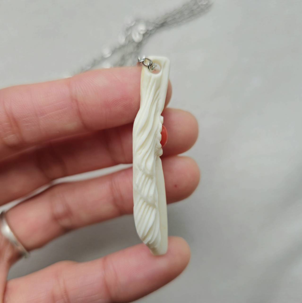 こちらは【鹿の角 赤珊瑚のフェザーネックレス】になります。