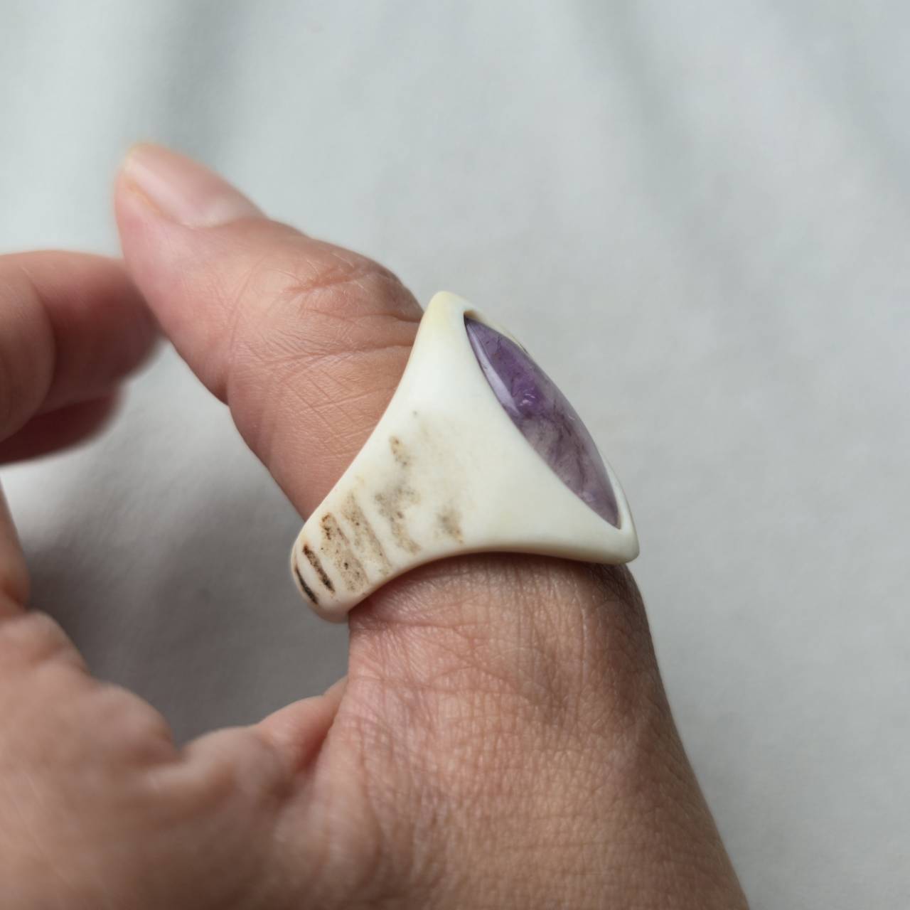 こちらは【鹿の角 バイカラーアメジストのリング(約)14.5号】になります。