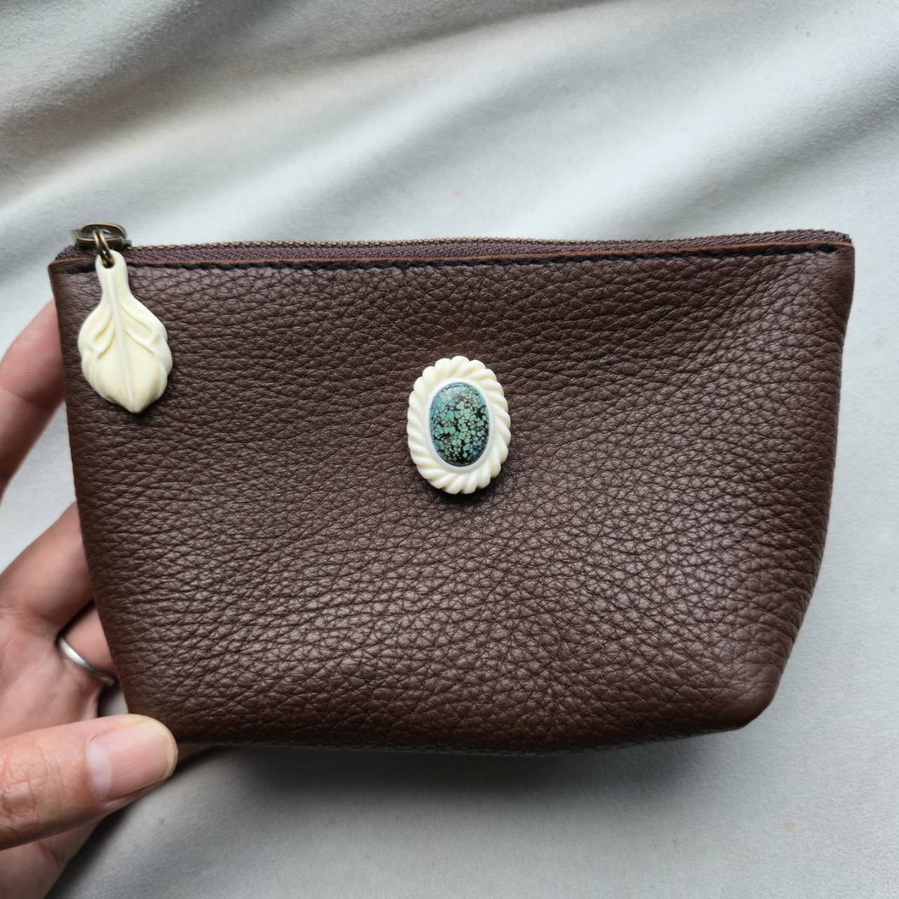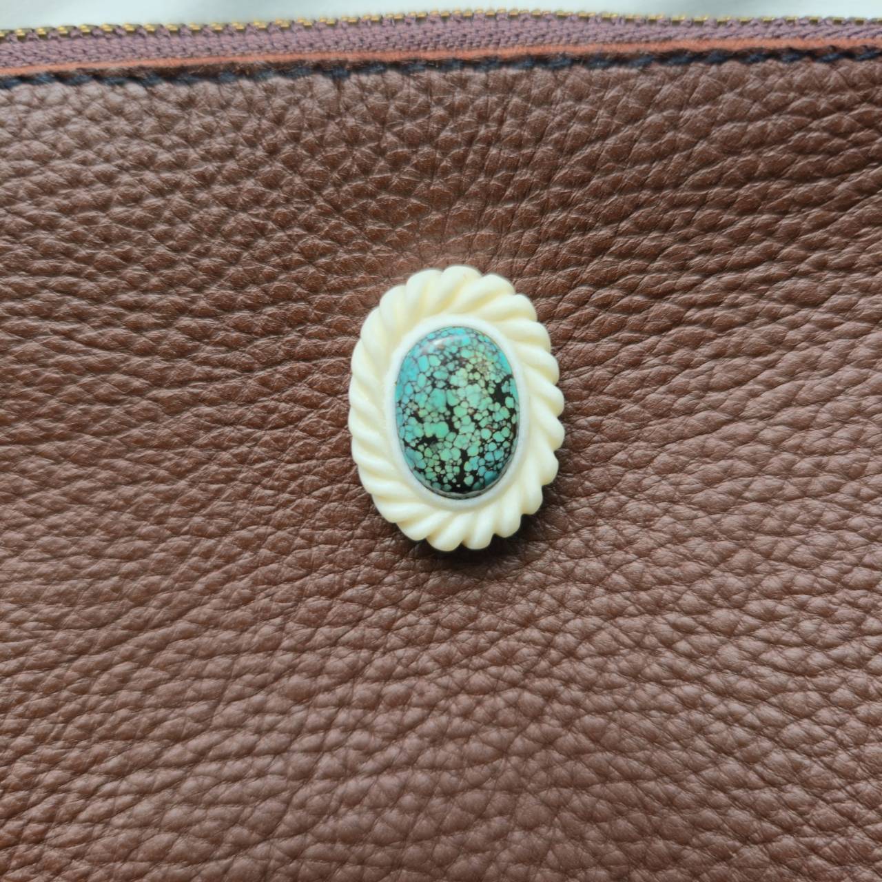 鹿革のポーチ チベタンターコイズの鹿角コンチョ