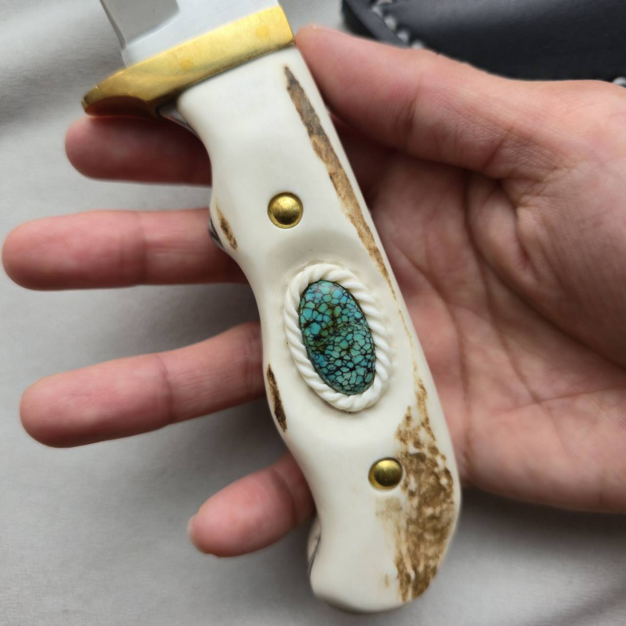 こちらは【鹿の角 チベタンターコイズのフルタングナイフ】になります。