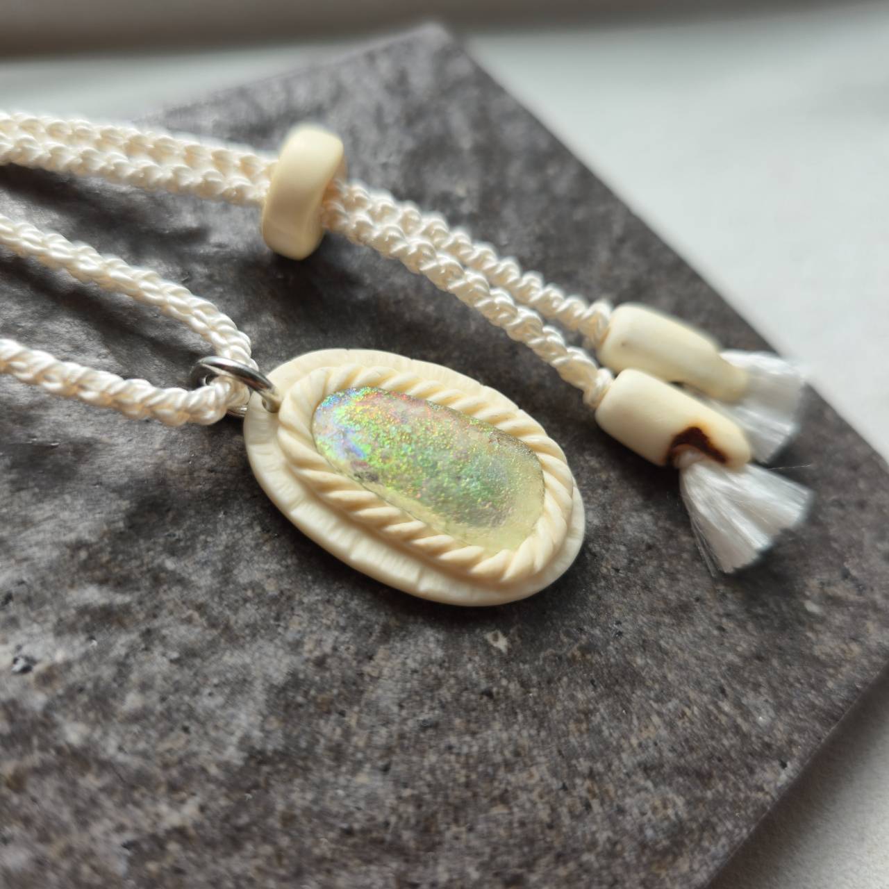 しっとりとした質感と温かみのあるアイボリー色は、自然素材ならではの優しさを持ちながらも、力強い生命の痕跡を感じさせます。