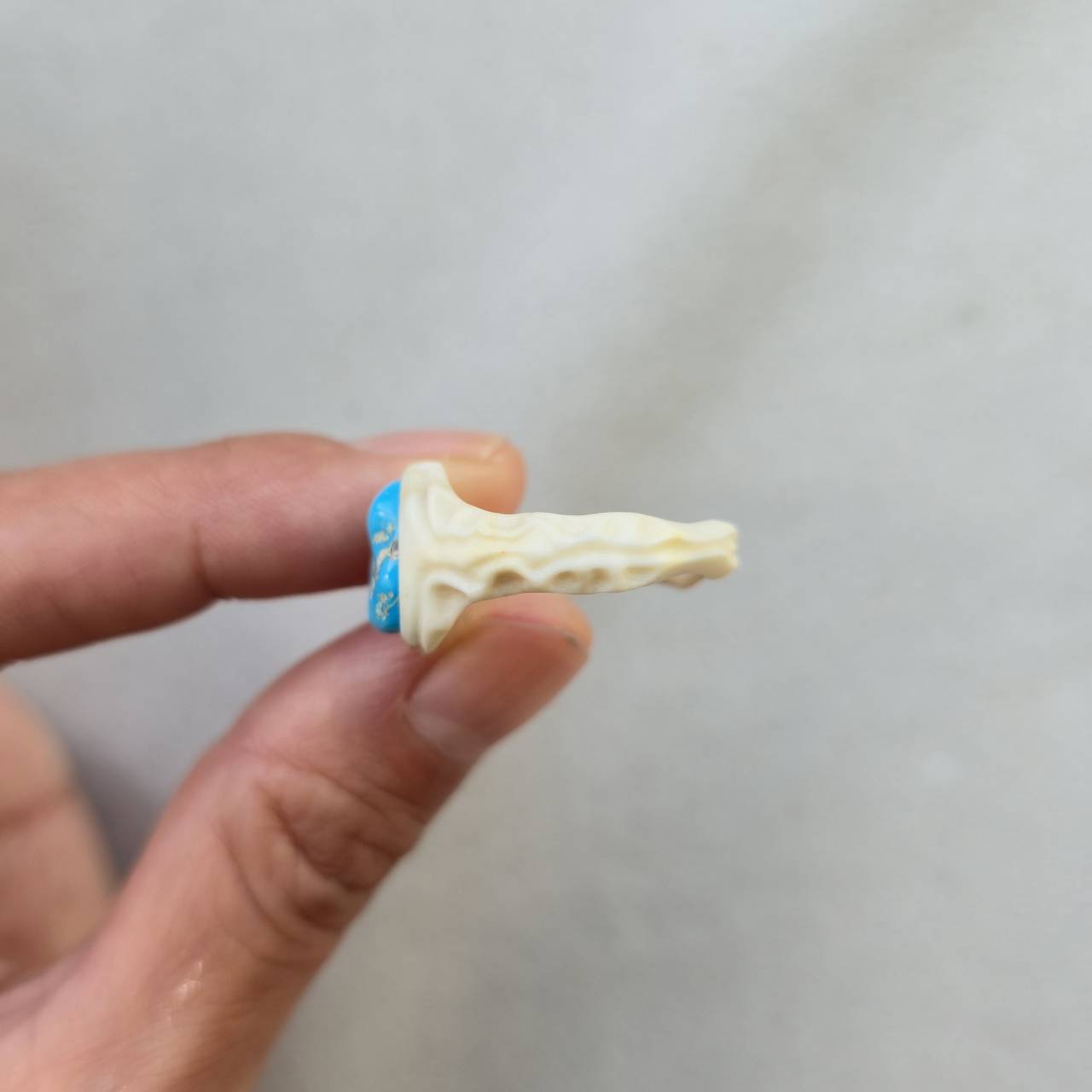 滑らかな鹿角をベースに、鮮やかなブルーを宿したスリーピングビューティーターコイズをセッティングしたリングです。