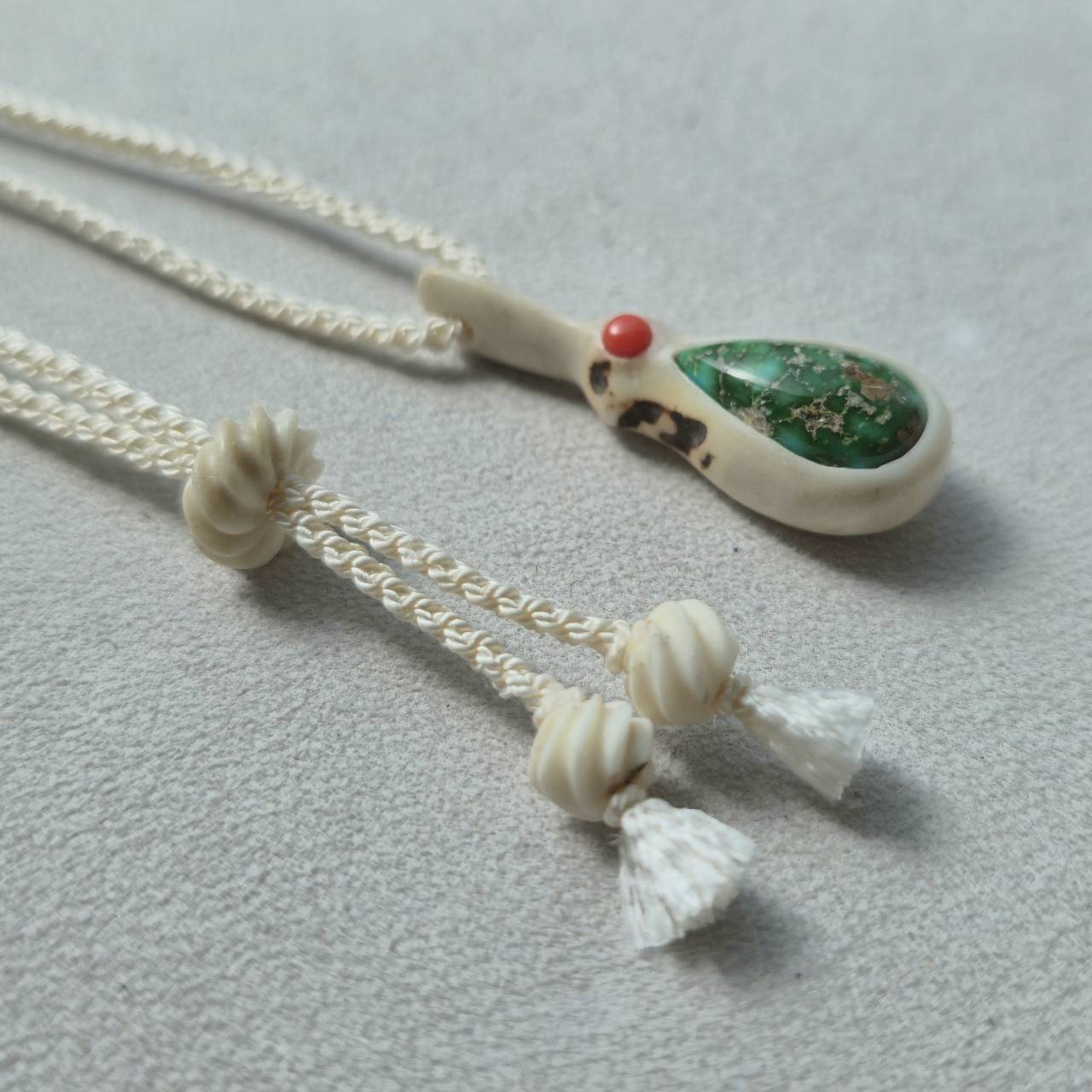 こちらは【鹿の角 ソノランターコイズと赤珊瑚のペンダント】になります。
