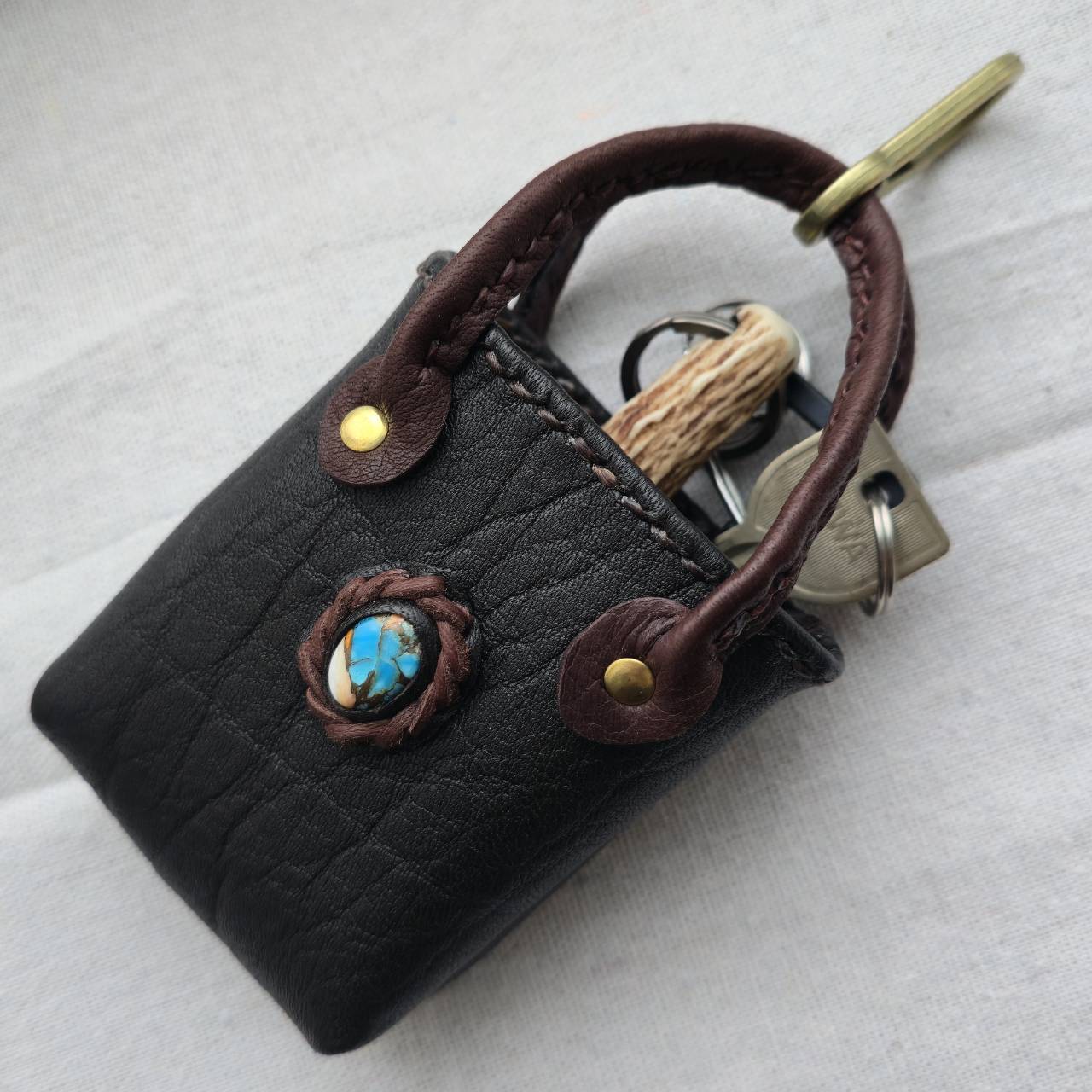 ■材質 鹿革、鹿の角、真鍮製金具
