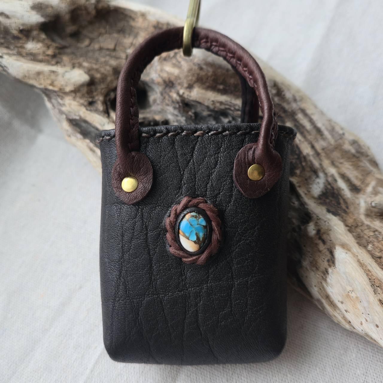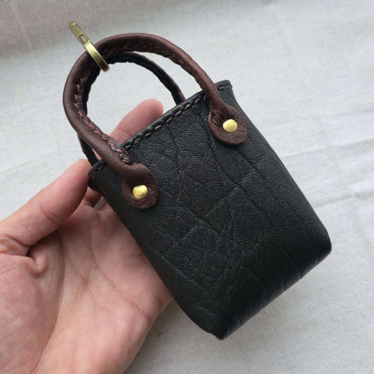 バッグに付ける、鹿革のミニチュアトート。