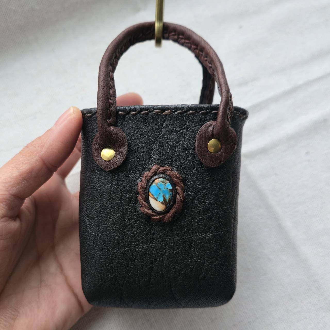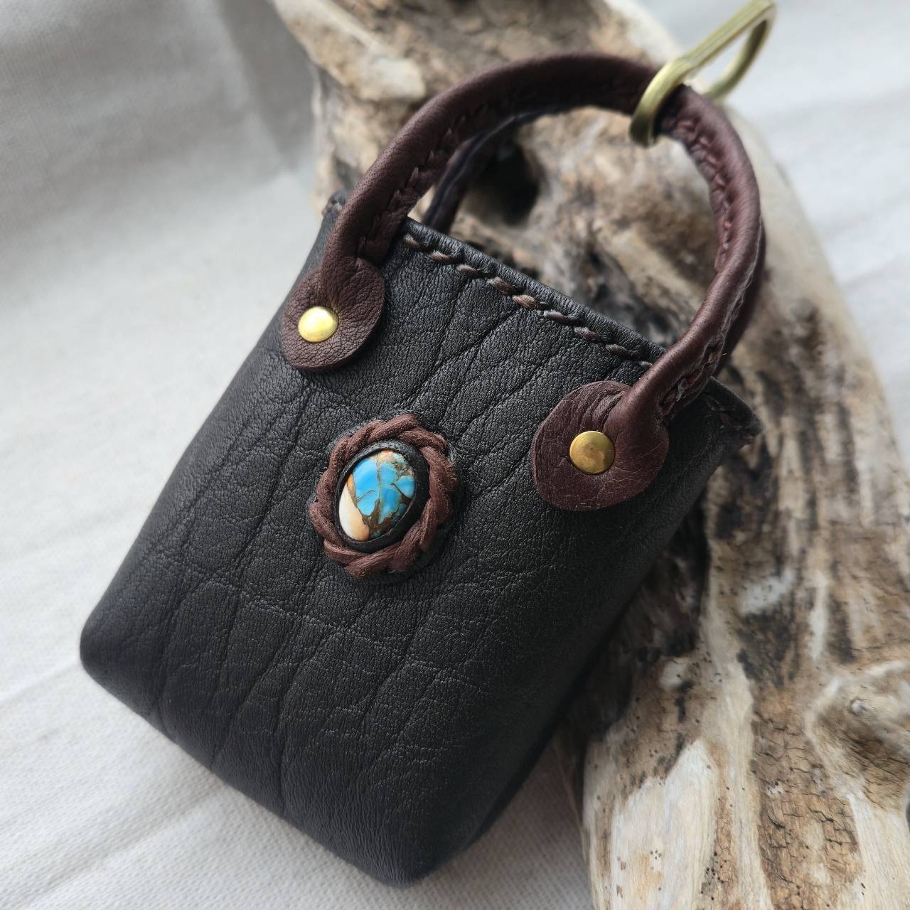 鹿革のミニチュアトート オイスターコッパーターコイズ