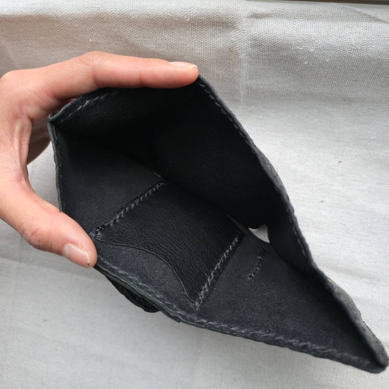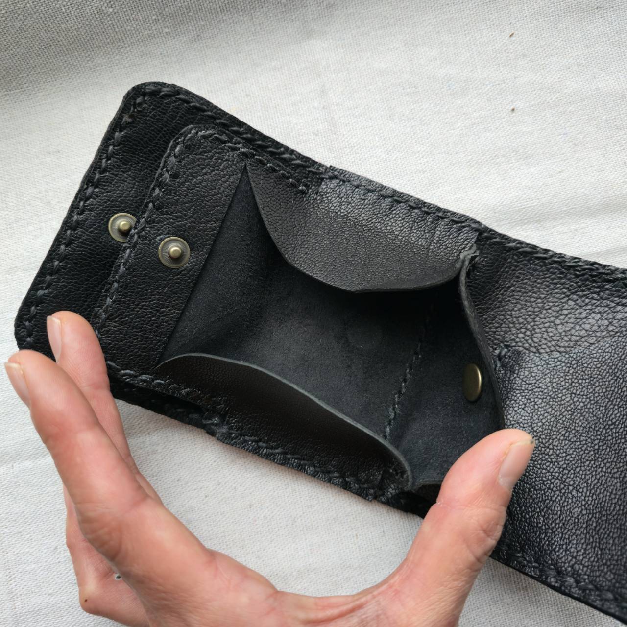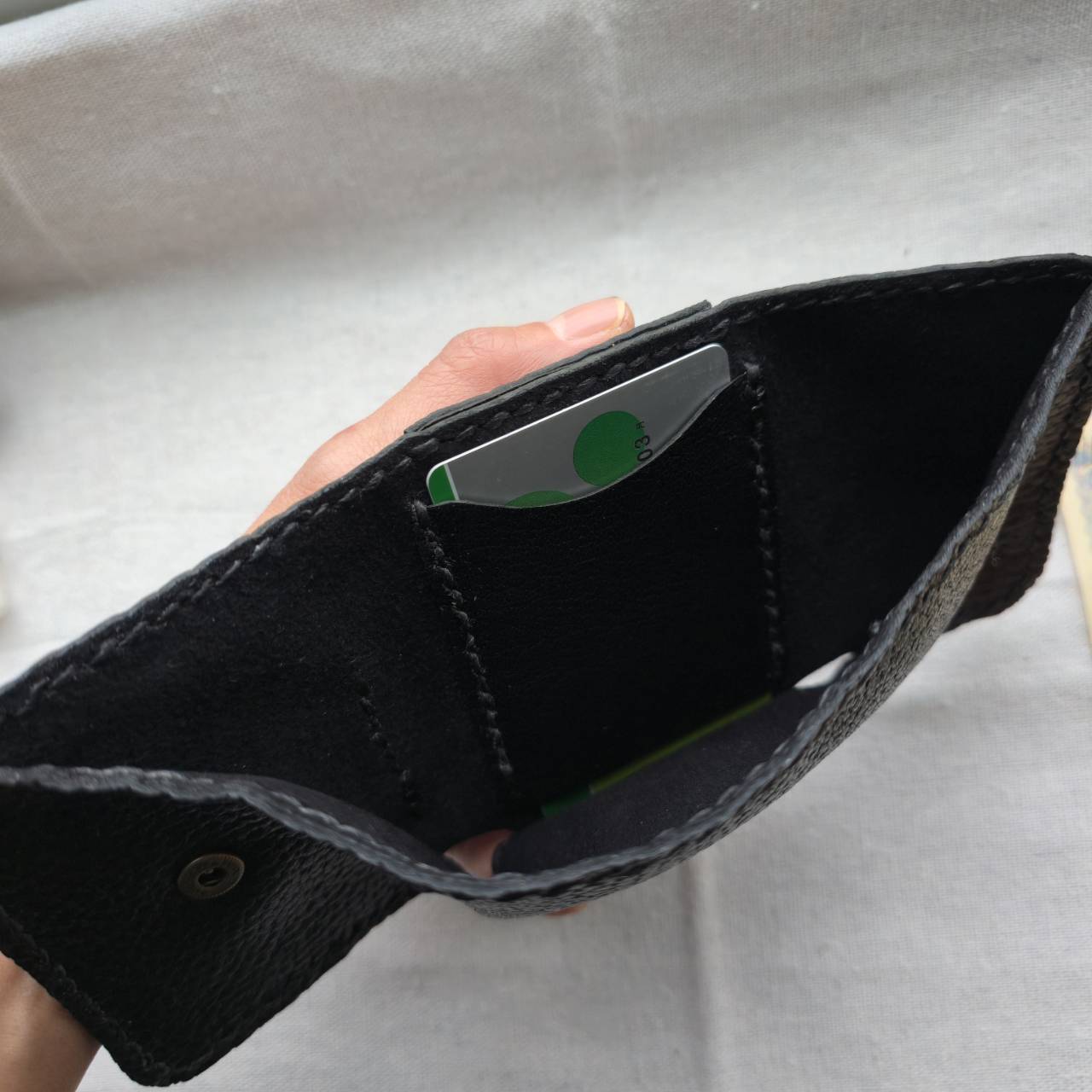 鹿革で、コンパクトな財布を作りました。