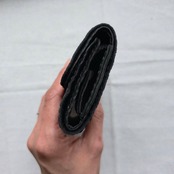 革のカシミヤと称されるような、素肌に吸い付くほど柔らかな鹿革とは少し違う素材です。