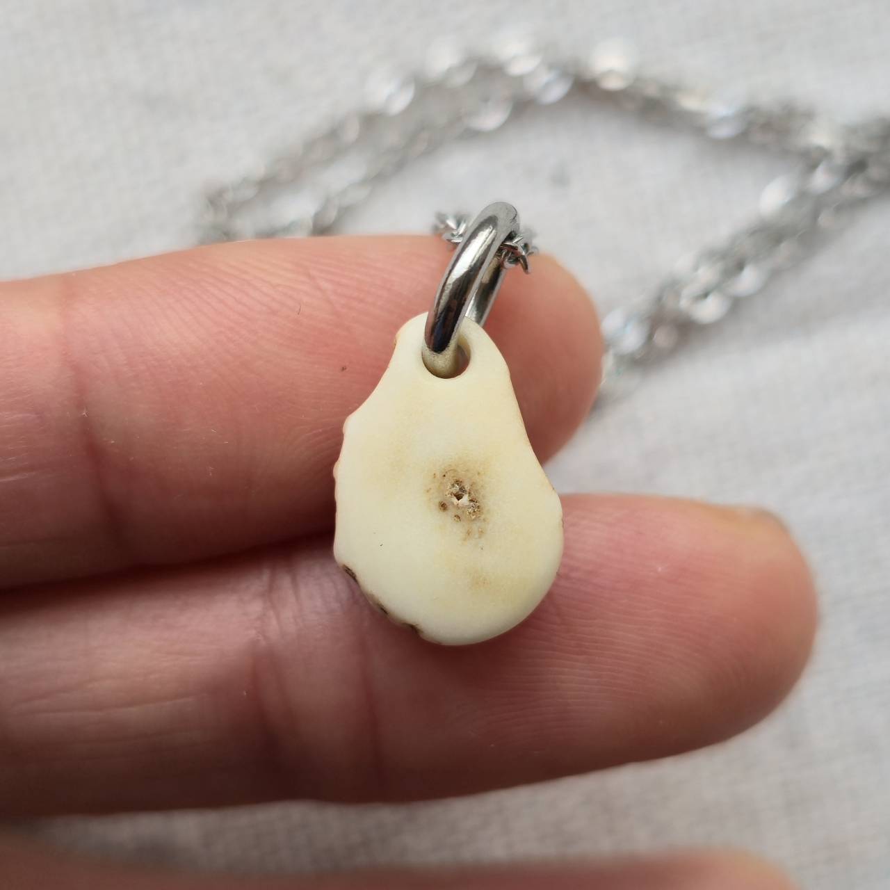 鹿の角を輪切りにし、磨き上げて土台としたペンダントです。