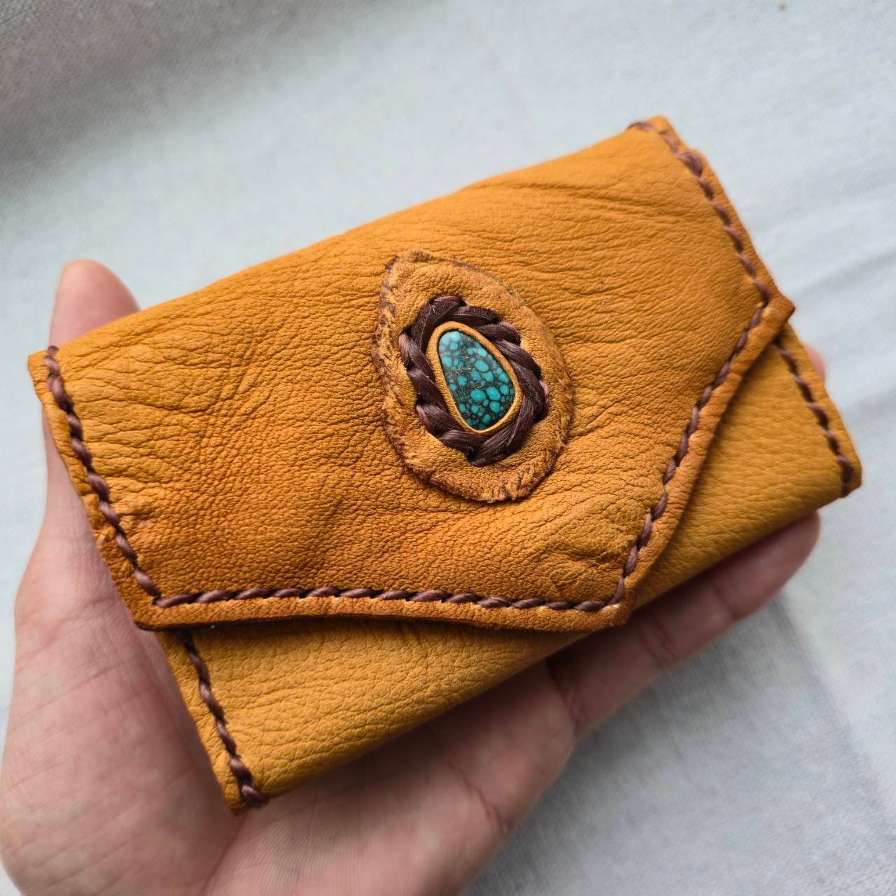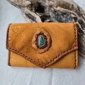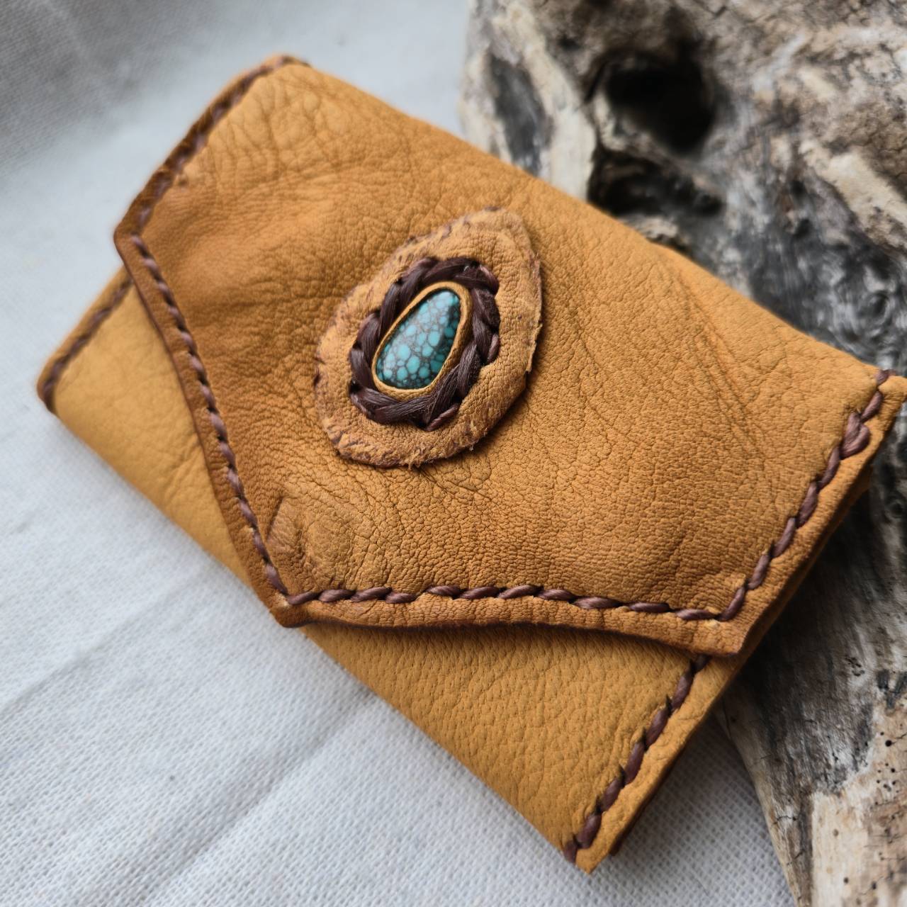 鹿革の名刺入れ クラウドマウンテンターコイズ