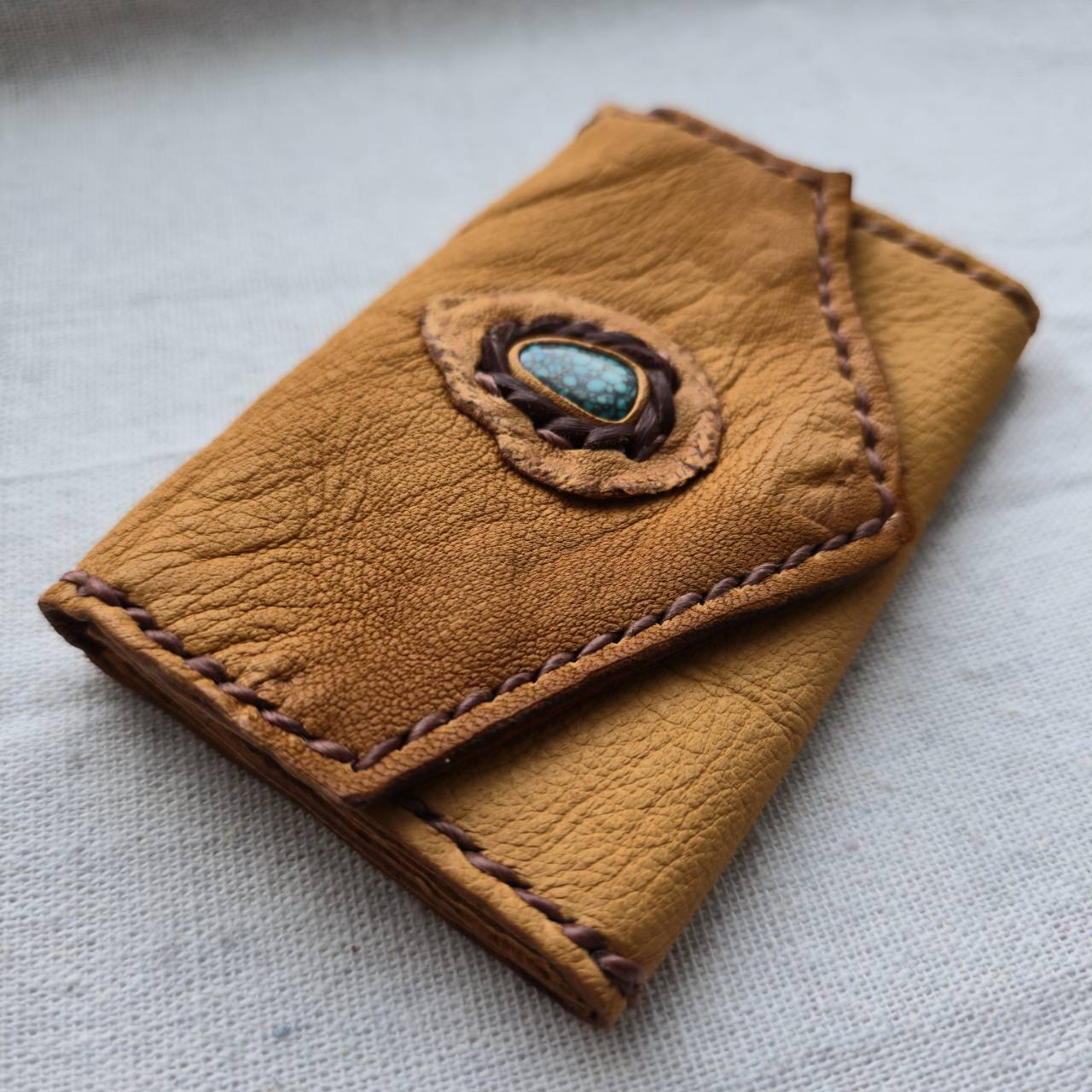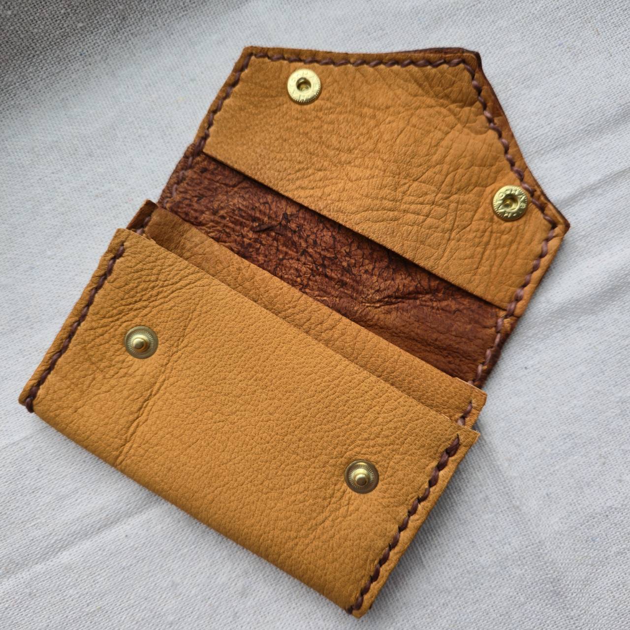 柔らかく肌触りのいい鹿革を使用し、手縫いによるハンドメイドで仕上げました。