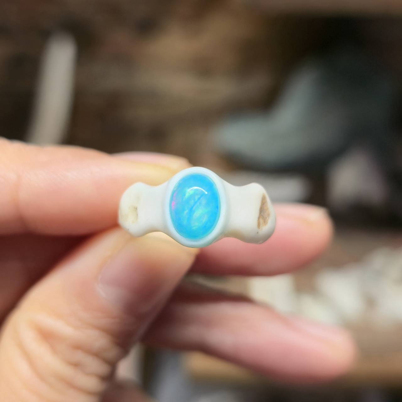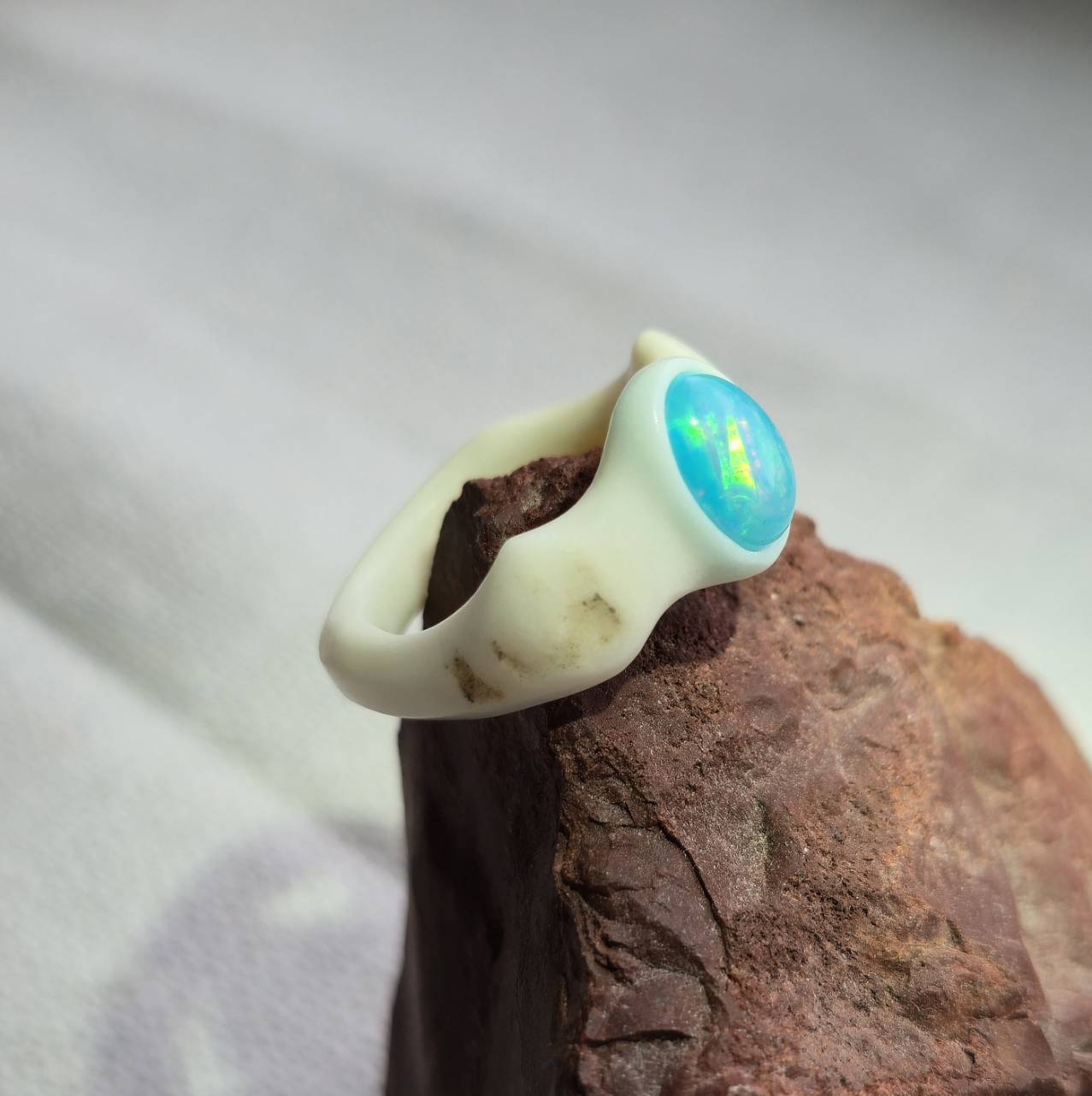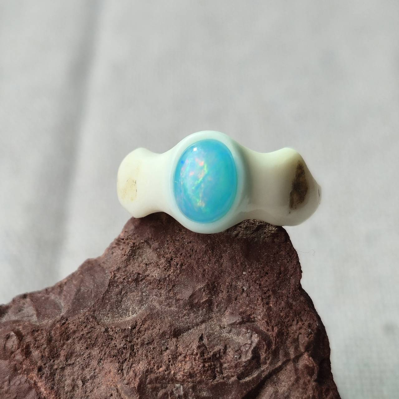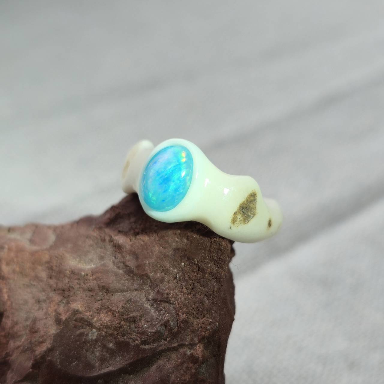 こちらは【鹿の角 ブルーカラーオパールのリング 約7.5号】になります。