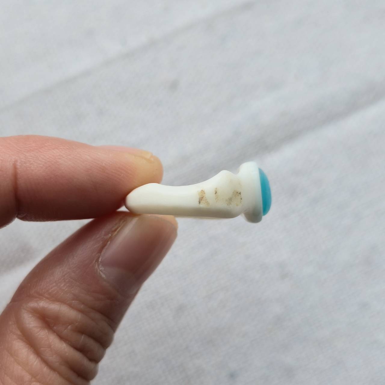 角の内部にある層構造や、わずかな色ムラを残しながら、指に当たる部分は滑らかに整えています。