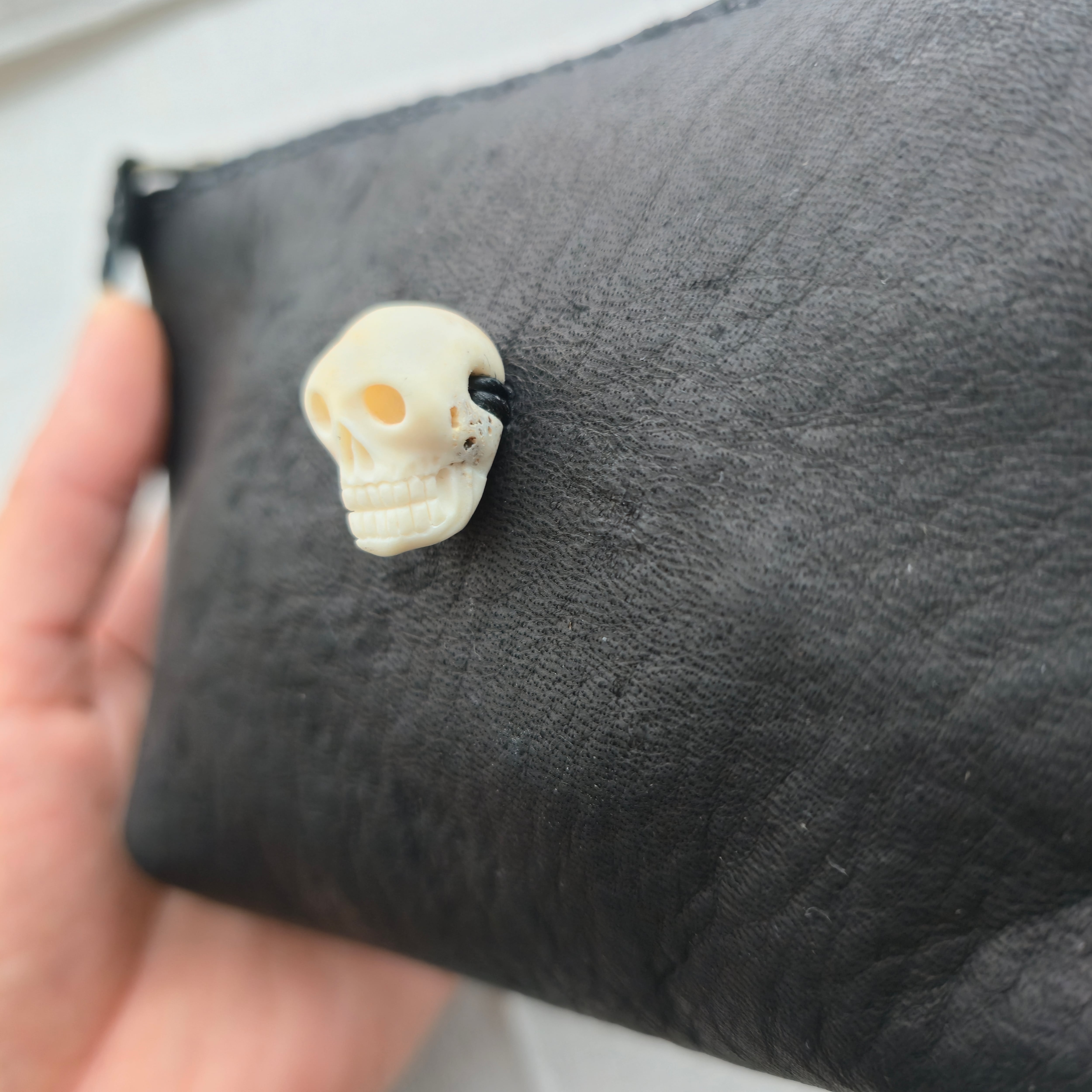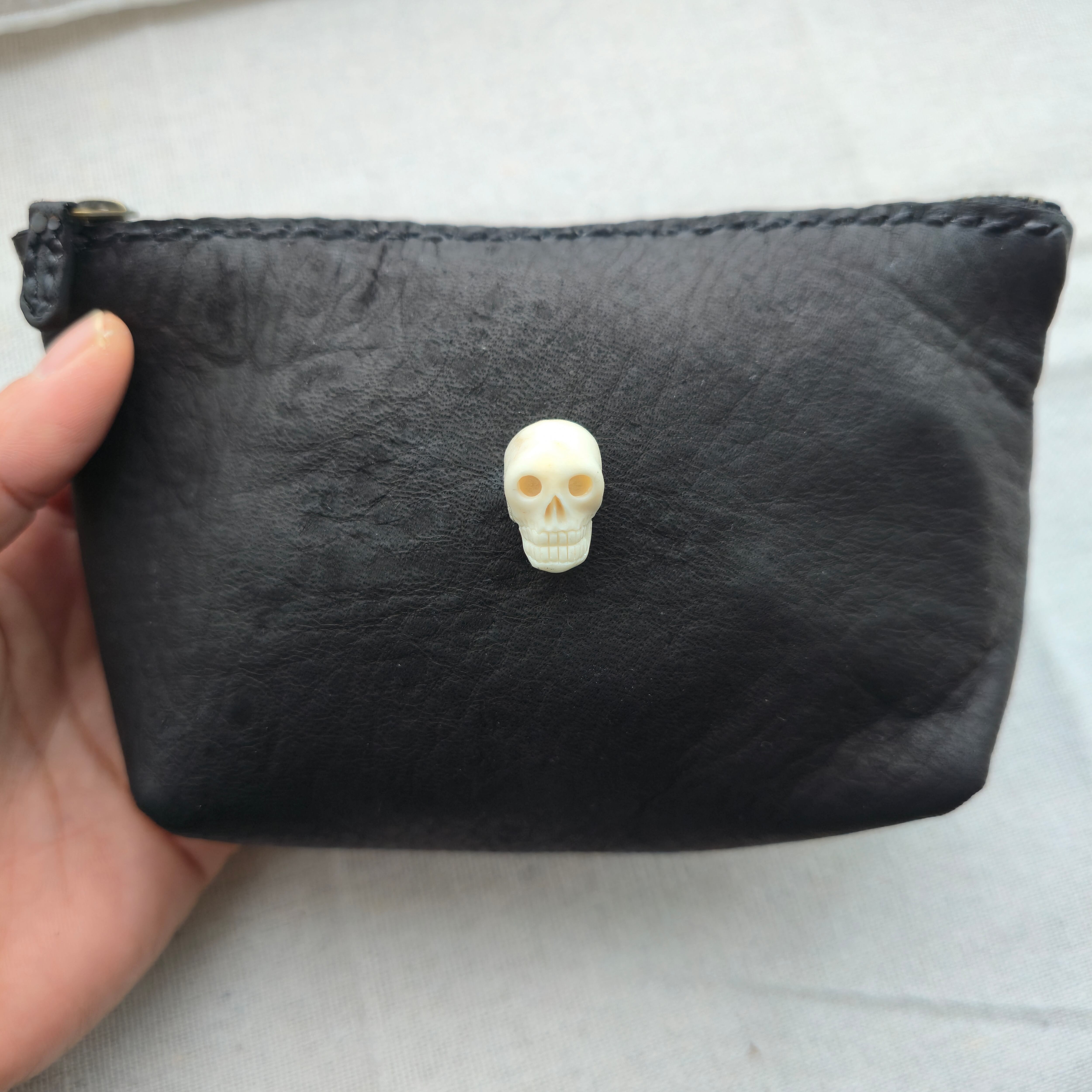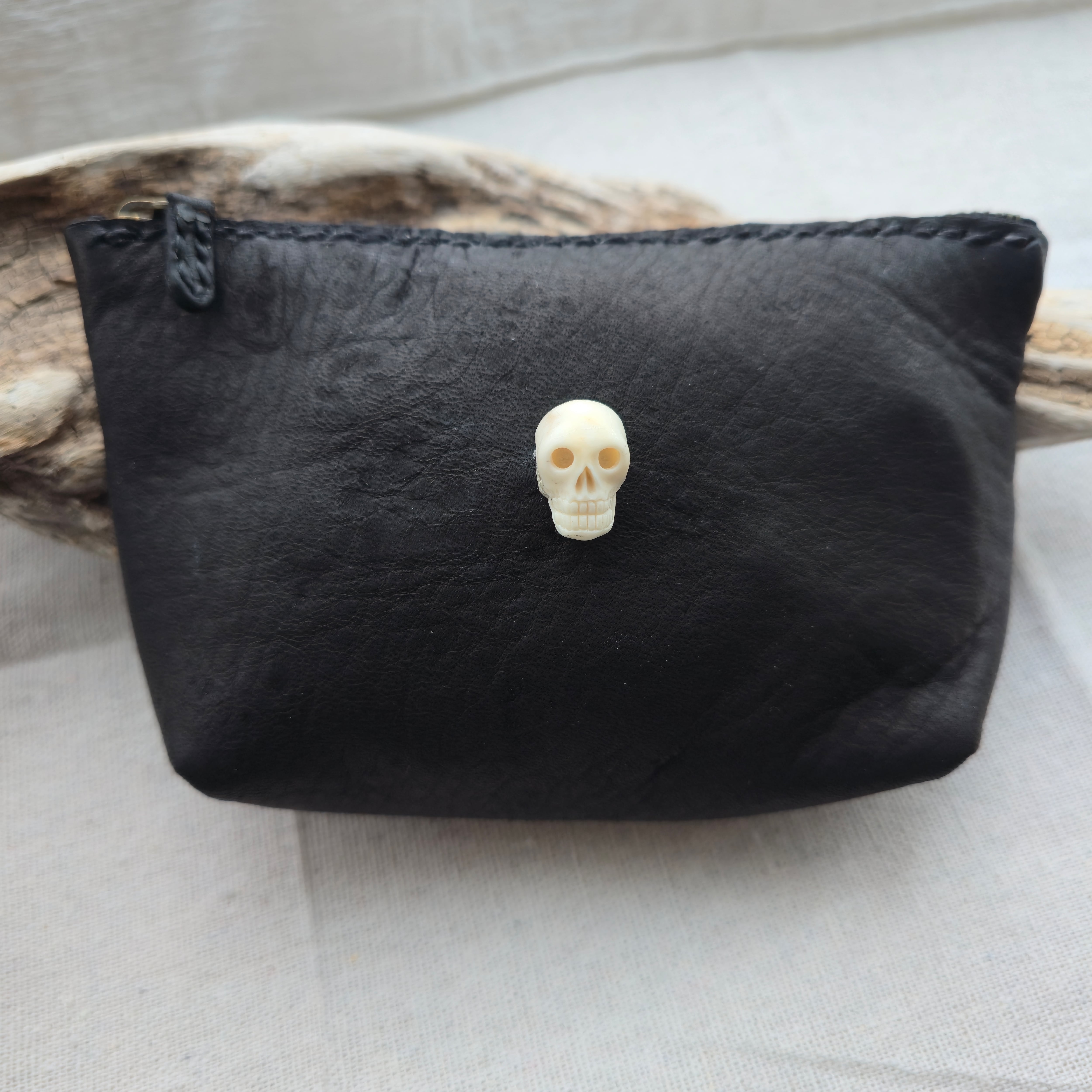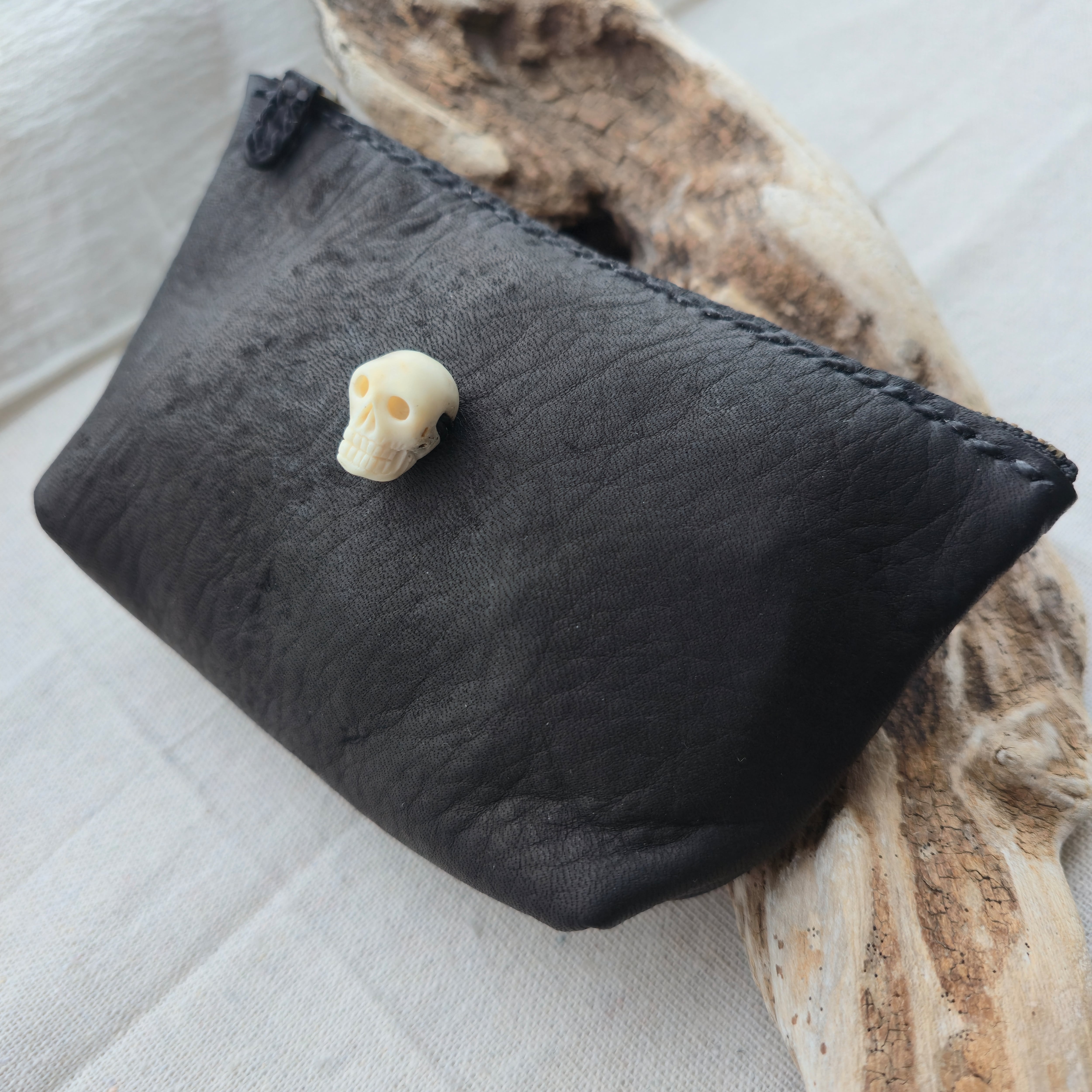 こちらは【鹿革のポーチ 鹿角スカルボタン】になります。