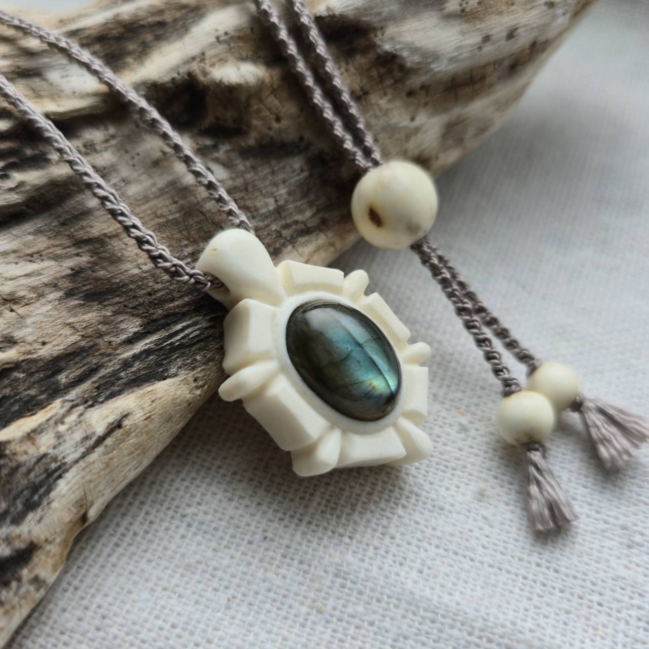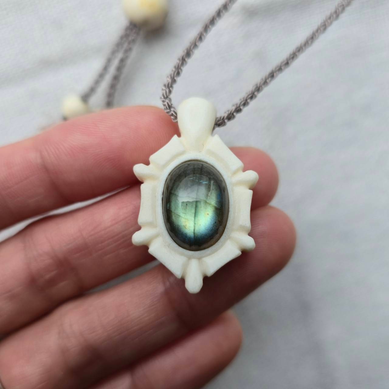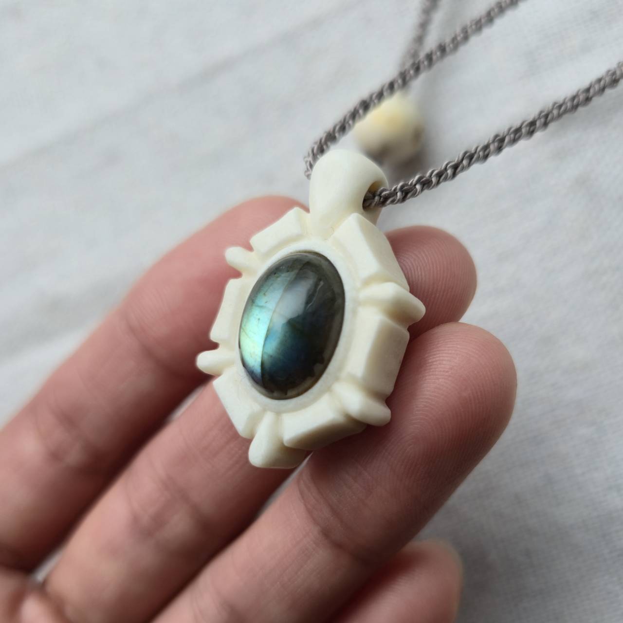 中央に埋め込んだのはラブラドライト。
