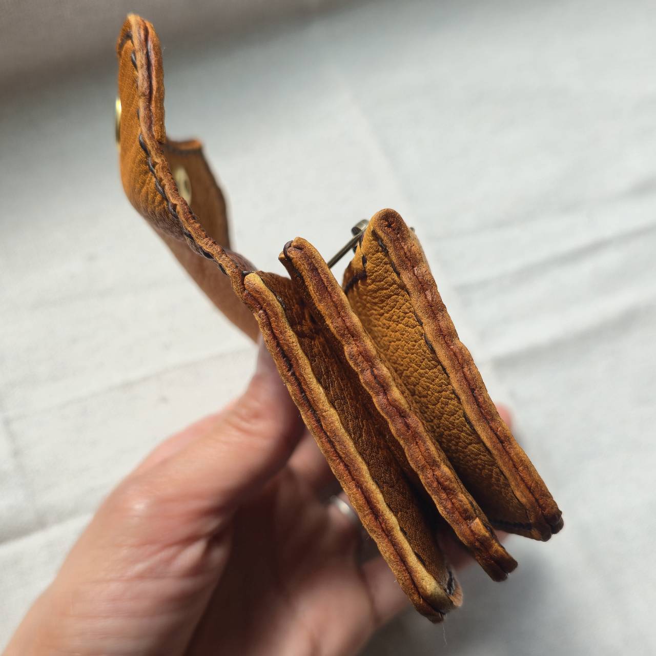 柔らかく肌触りのいい鹿革を使用し、手縫いによるハンドメイドで仕上げました。