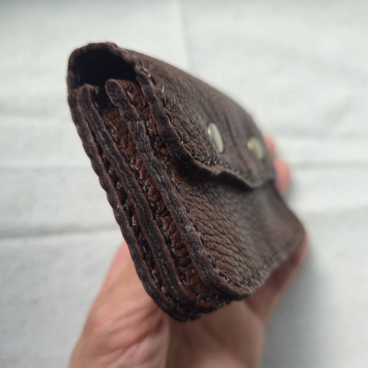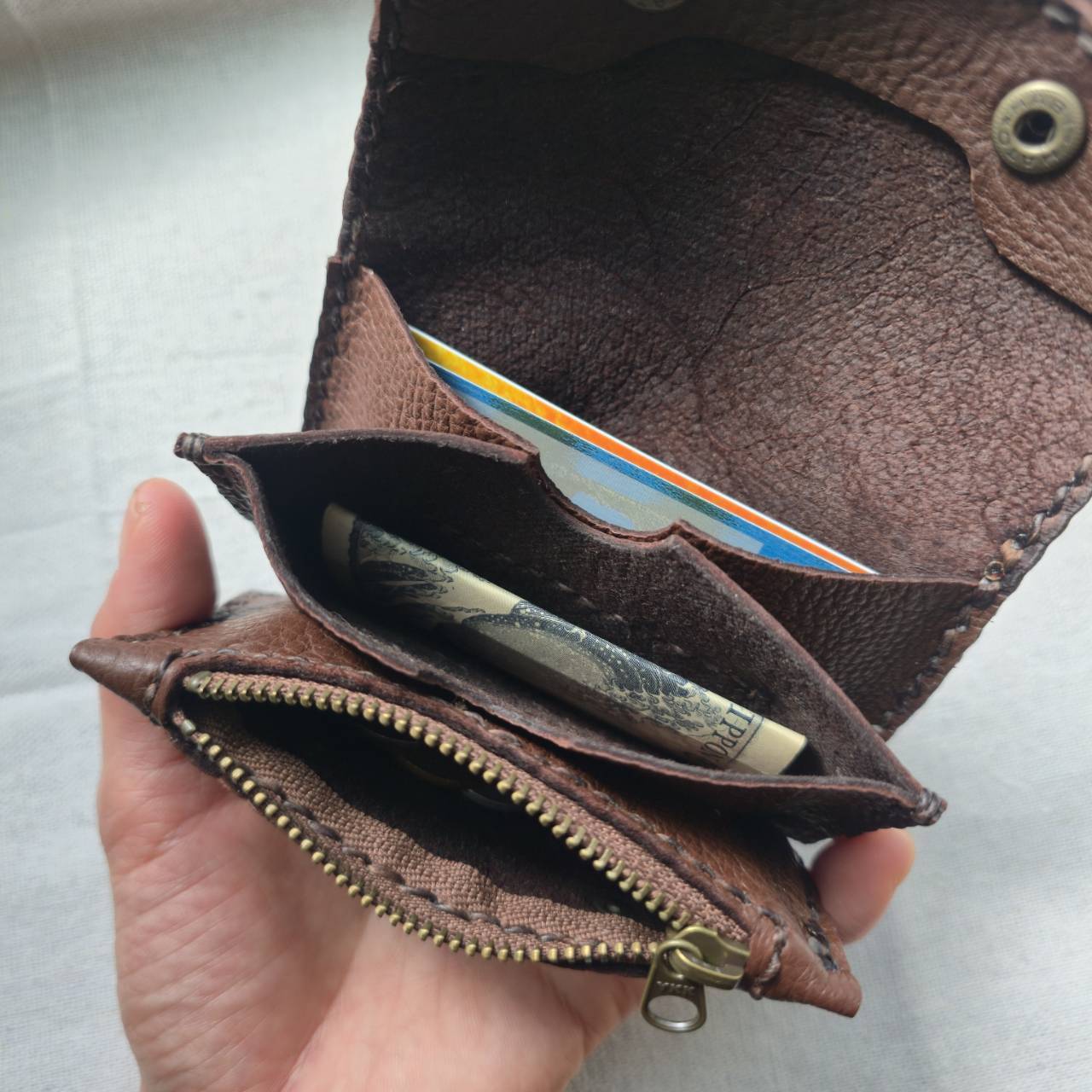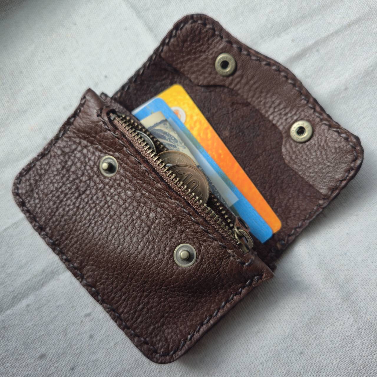 キャッシュレス化が進む暮らしを前提に、必要最低限を無理なく収められるサイズ感を意識して作りました。