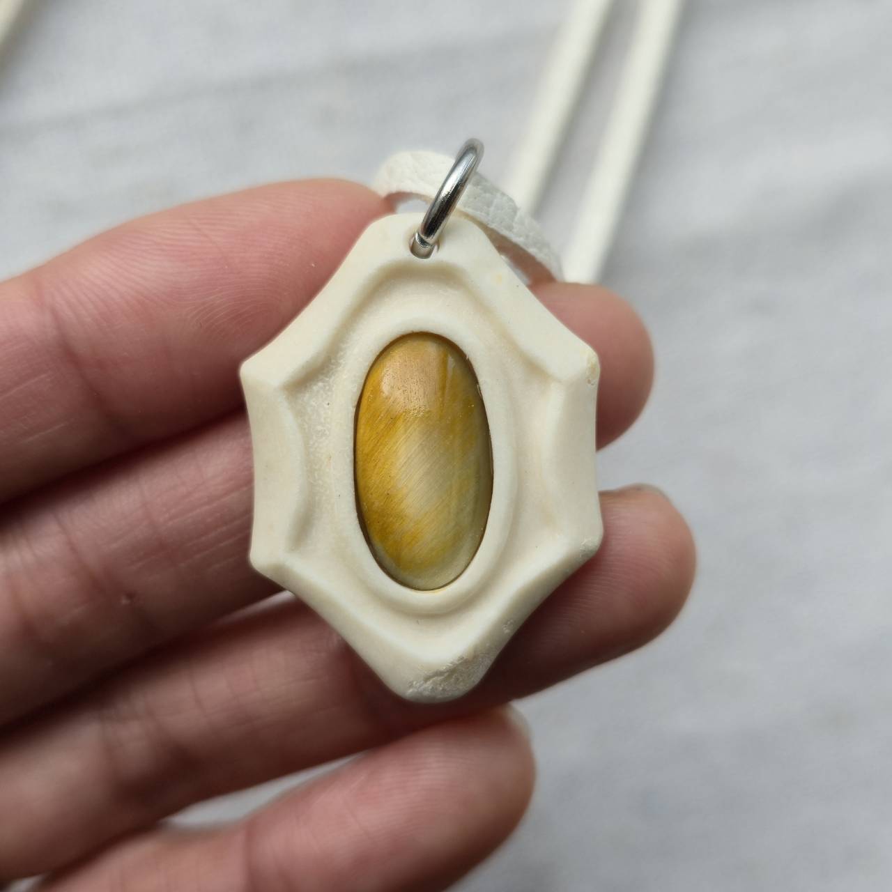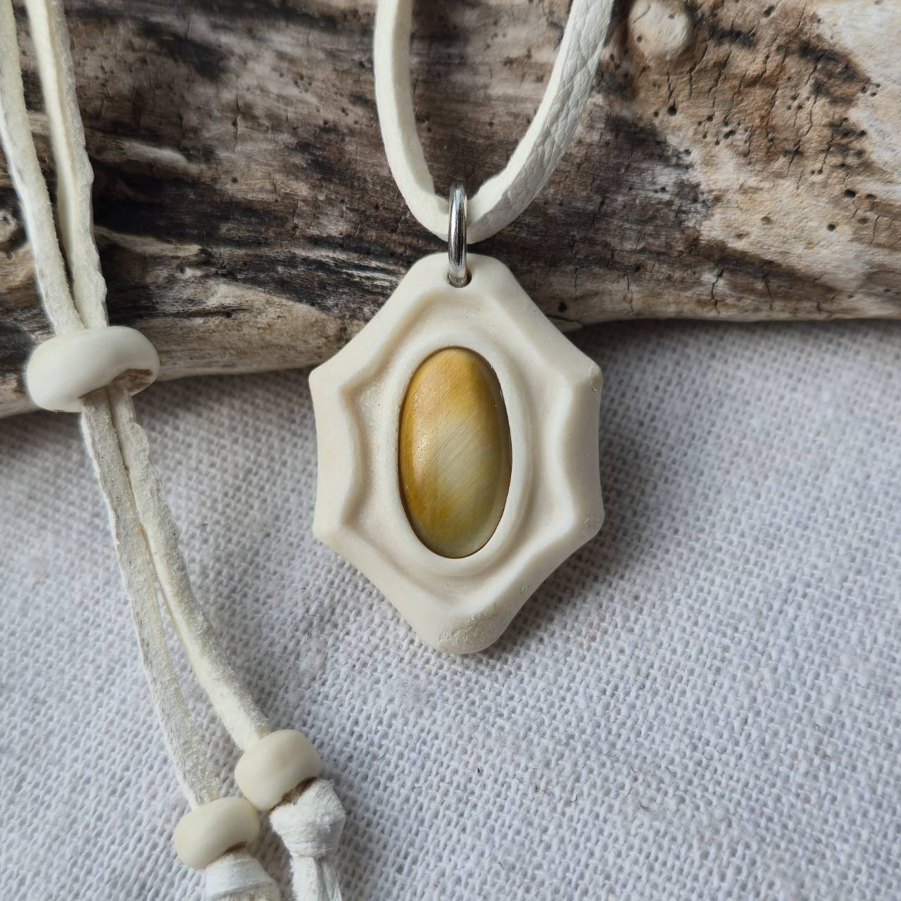こちらは【鹿の角 タイガーアイのペンダント】になります。