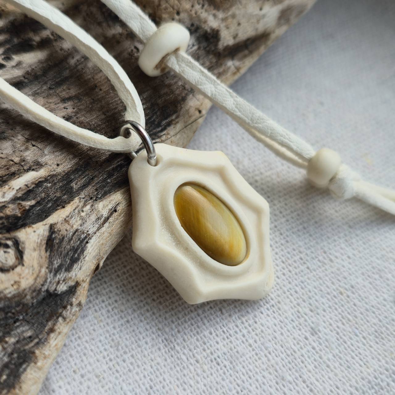 北海道奥尻島で「身に着ける自然」をテーマに、鹿の角や水牛の角、虹彩珊瑚、天然石などを使用してアクセサリーや小物を制作しています。