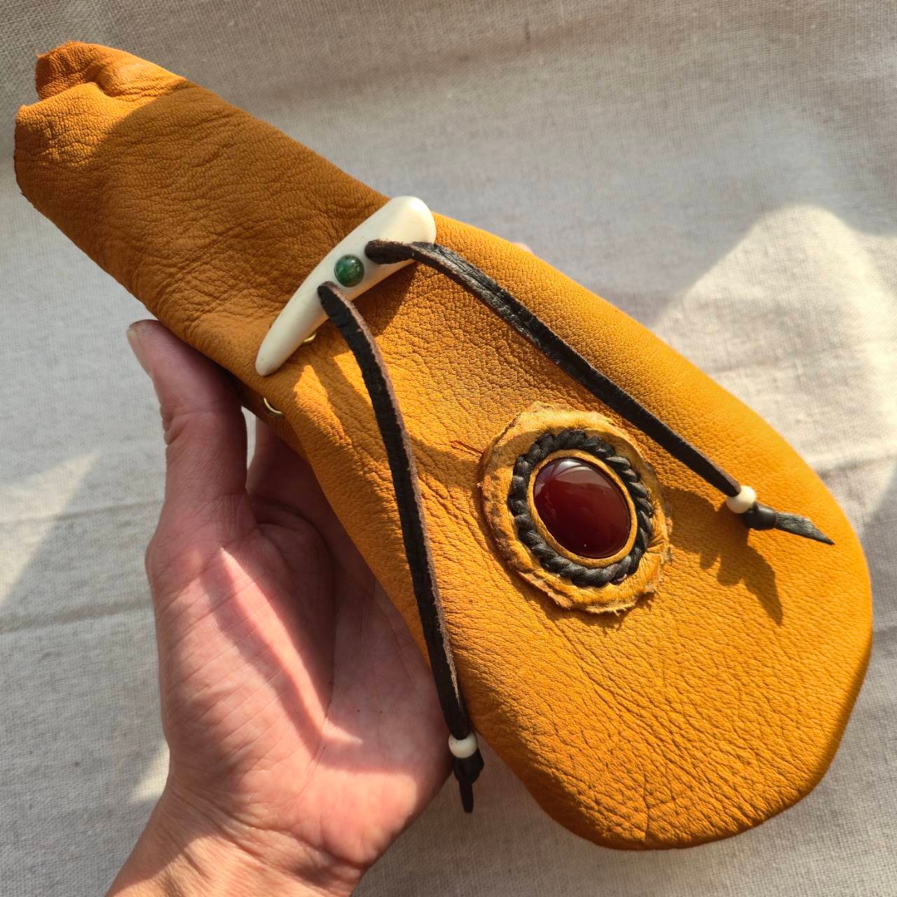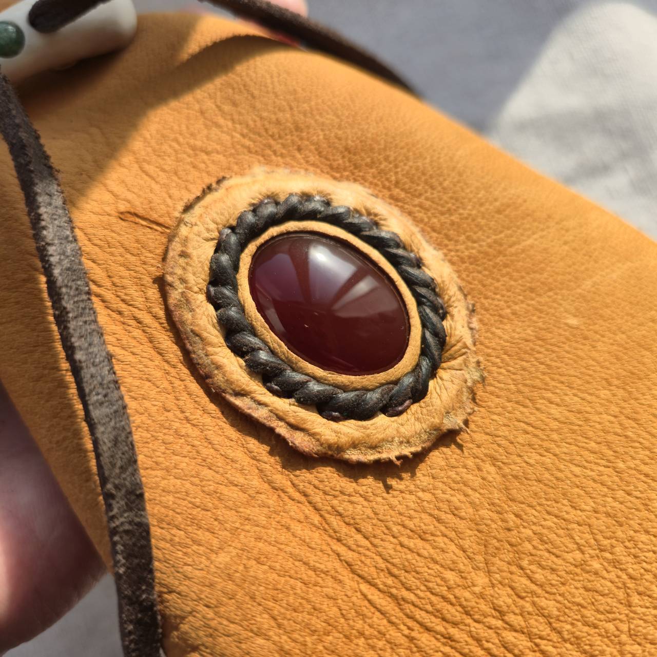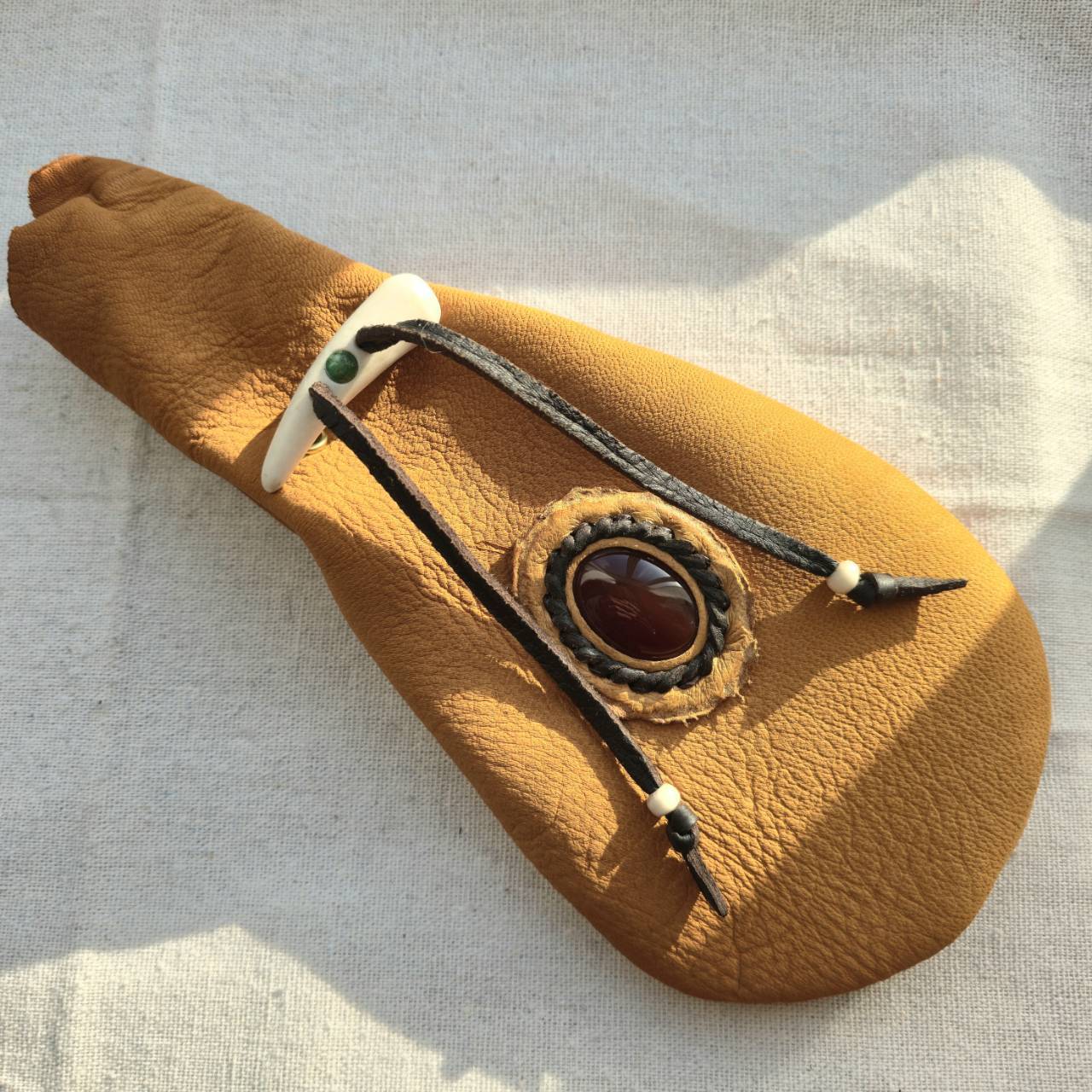 こちらは【鹿革の巾着 レッドアゲート】になります。