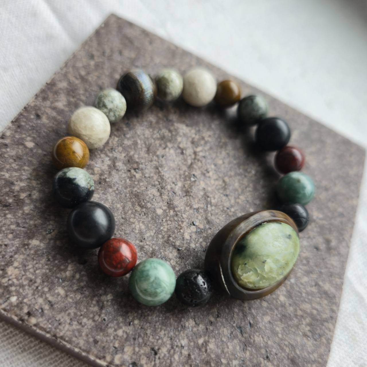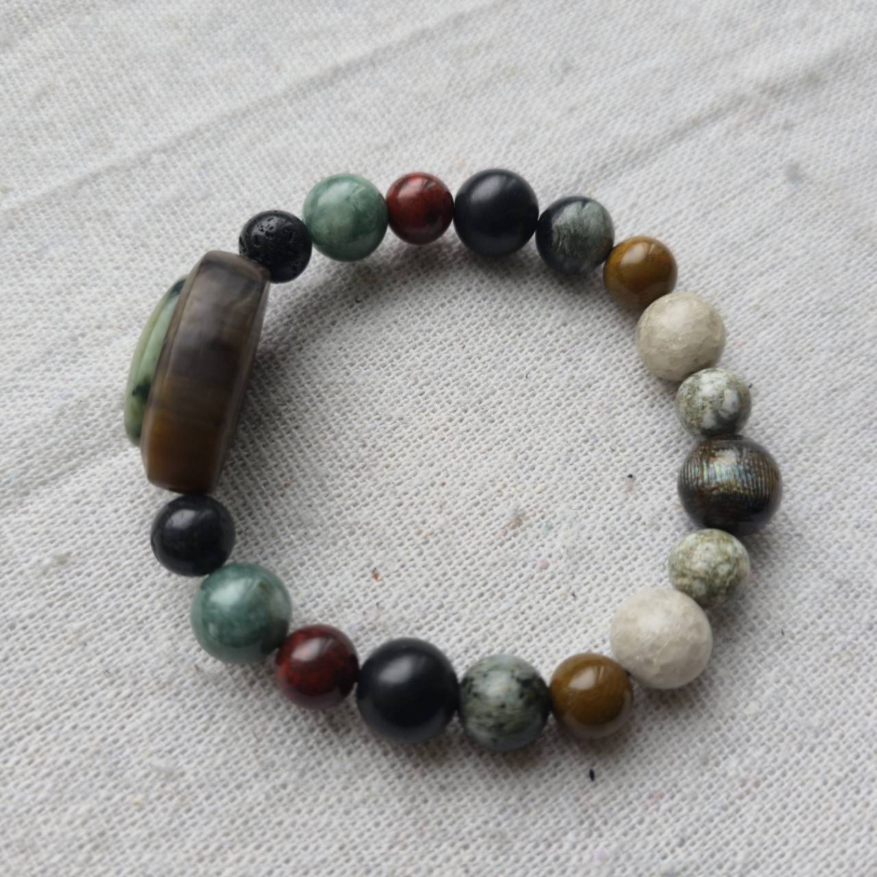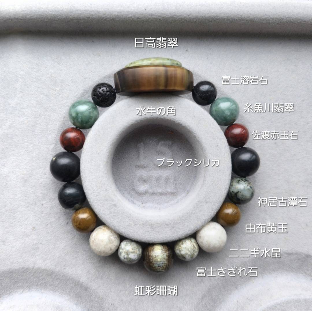 こちらは【日高翡翠と日本銘石のシャーマンブレスレット】になります。