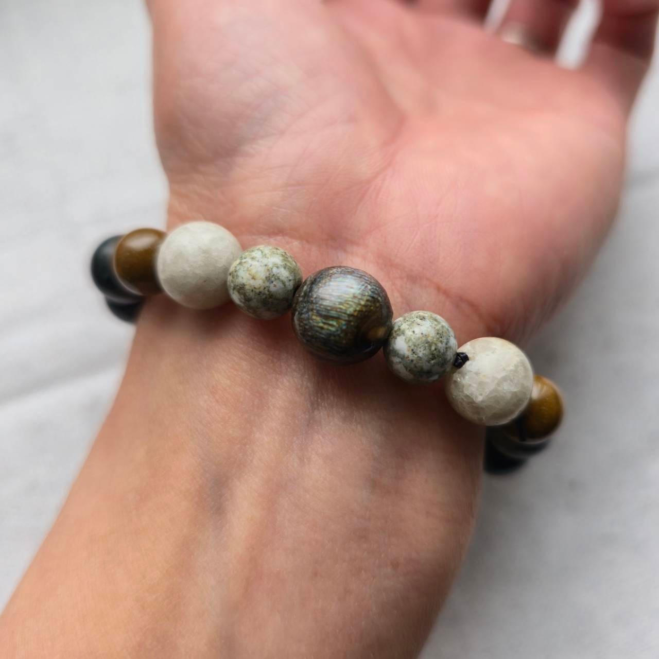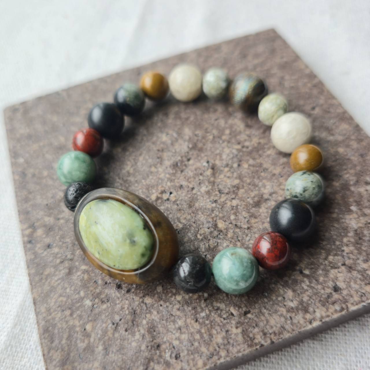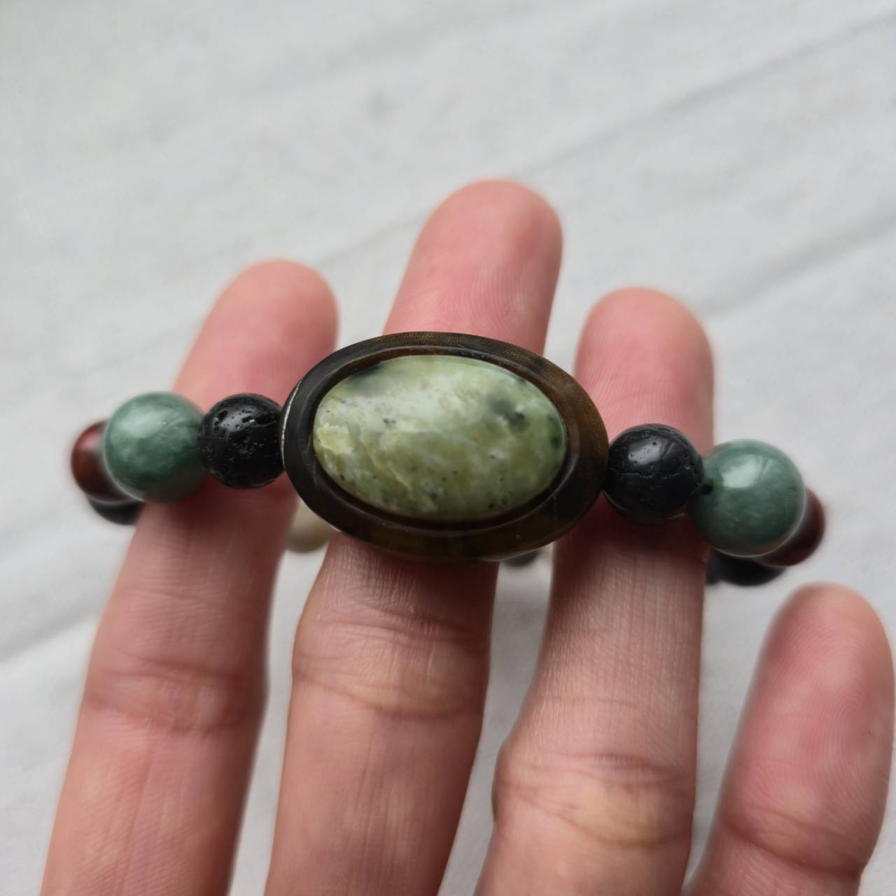 こちらは【日高翡翠と日本銘石のシャーマンブレスレット】になります。