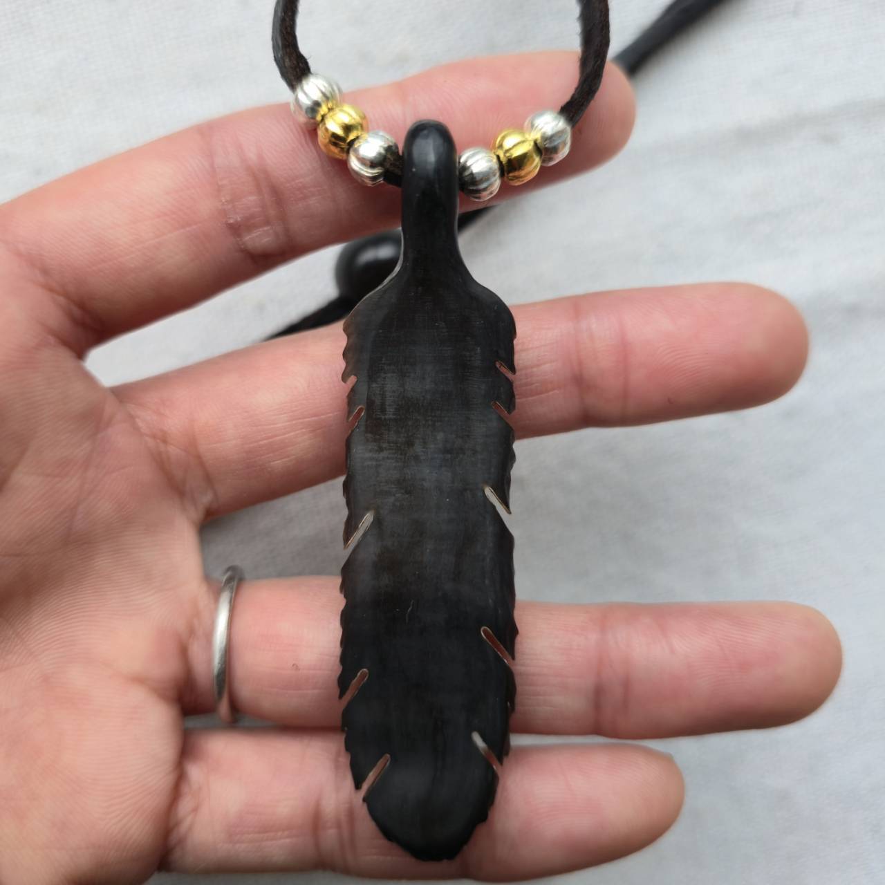 水牛の角を削り出し、丁寧にフェザーを彫り込んだペンダントです。