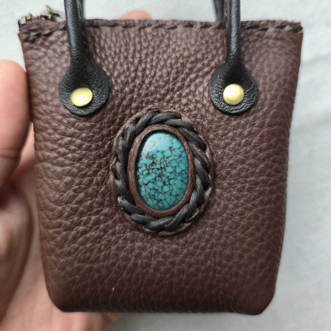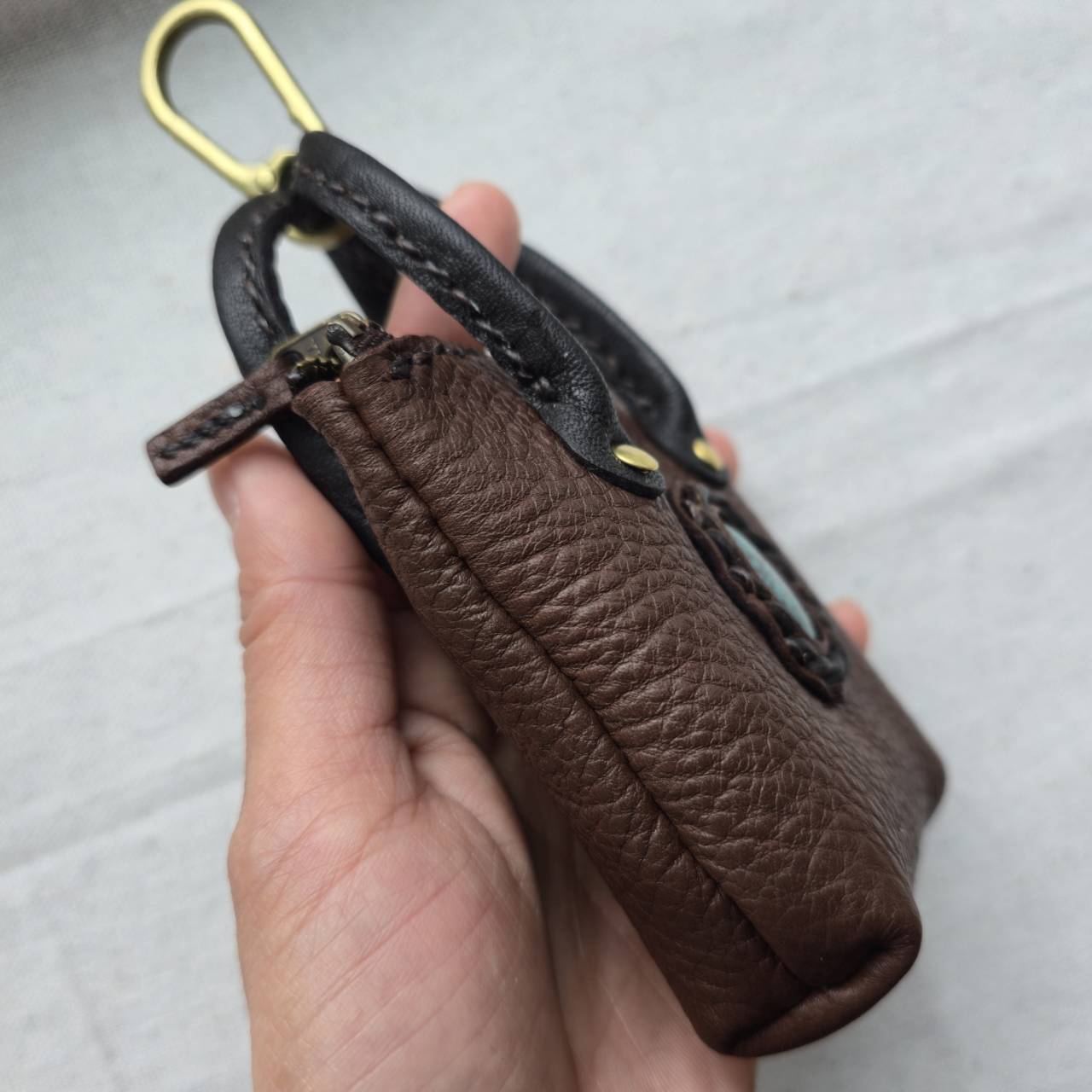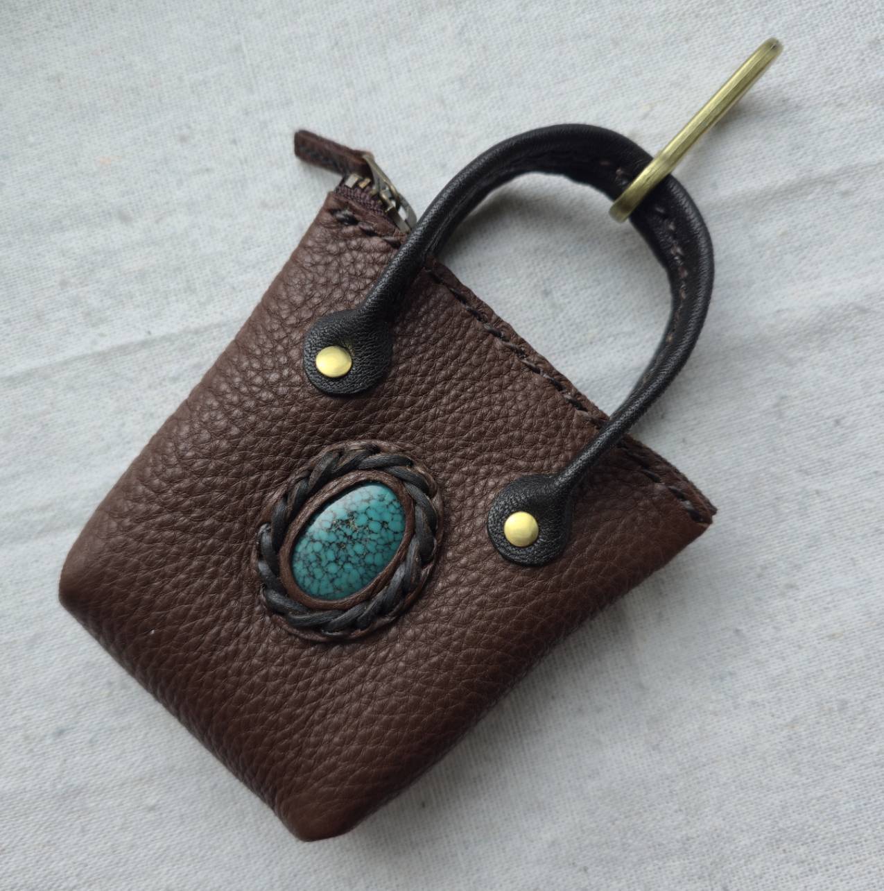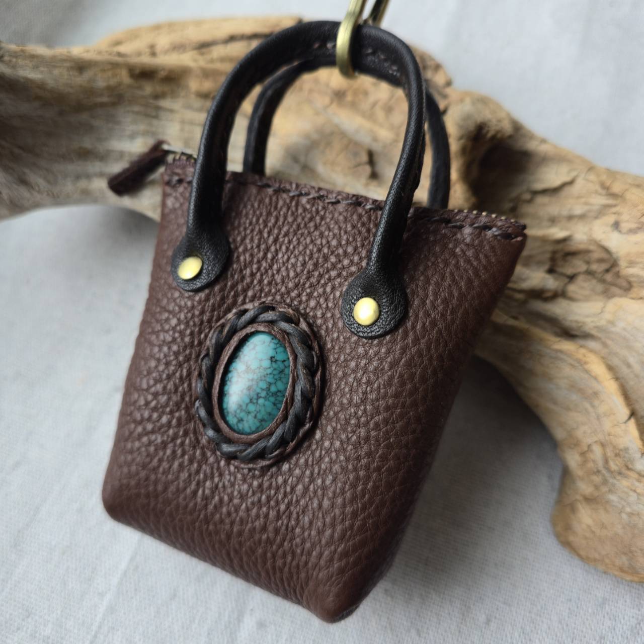 鹿革のミニチュアトート フーベイターコイズ#2