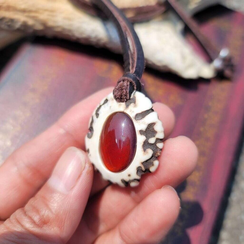 【蝦夷鹿の角 ヘソナイトガーネット ペンダント】になります。