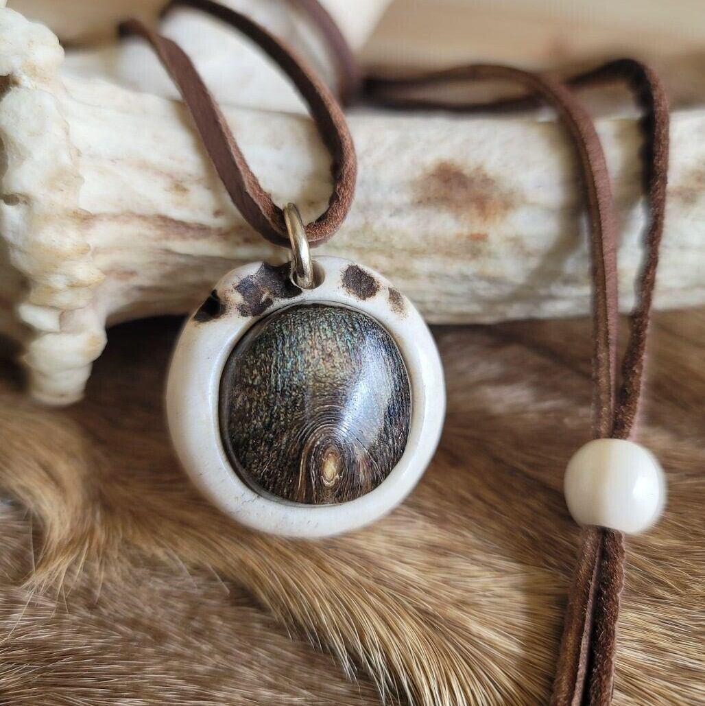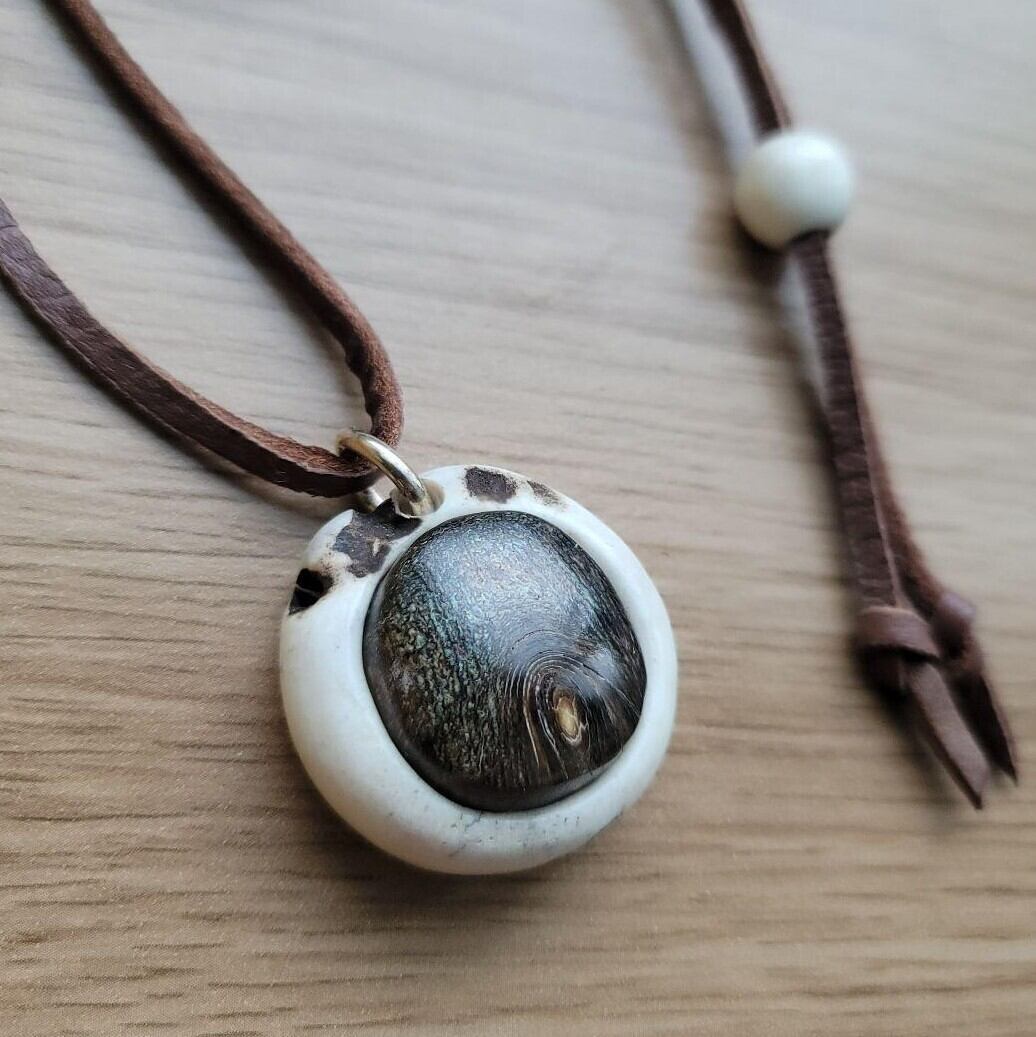 【蝦夷鹿の角 虹珊瑚のペンダント】です。