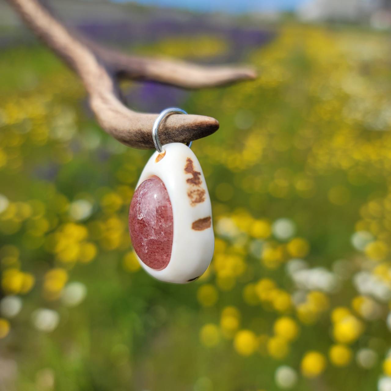 ご希望の方は+500円で鹿革紐3㎜、もしくは5㎜(調整用カレンシルバービーズまたは鹿の角製ビーズ、天然石ビーズの有無選択)を使用し、ペンダントにすることも可能です。