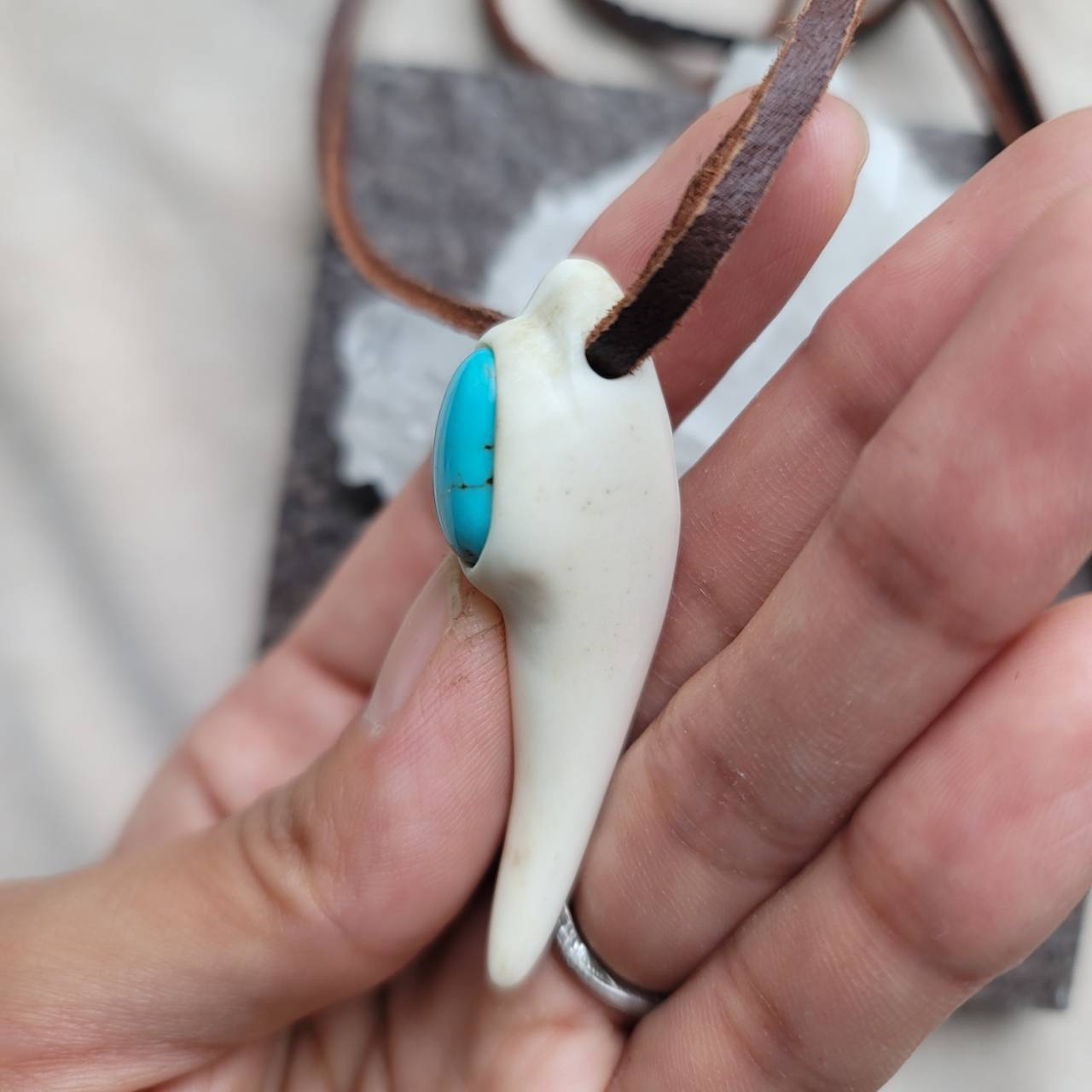 【鹿の角 キングマンターコイズ ペンダント】になります。
