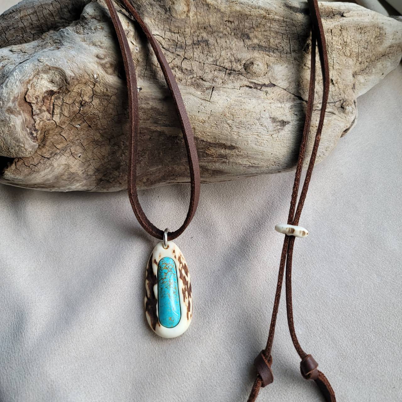 【鹿の角 キングマンターコイズ ペンダント】になります。