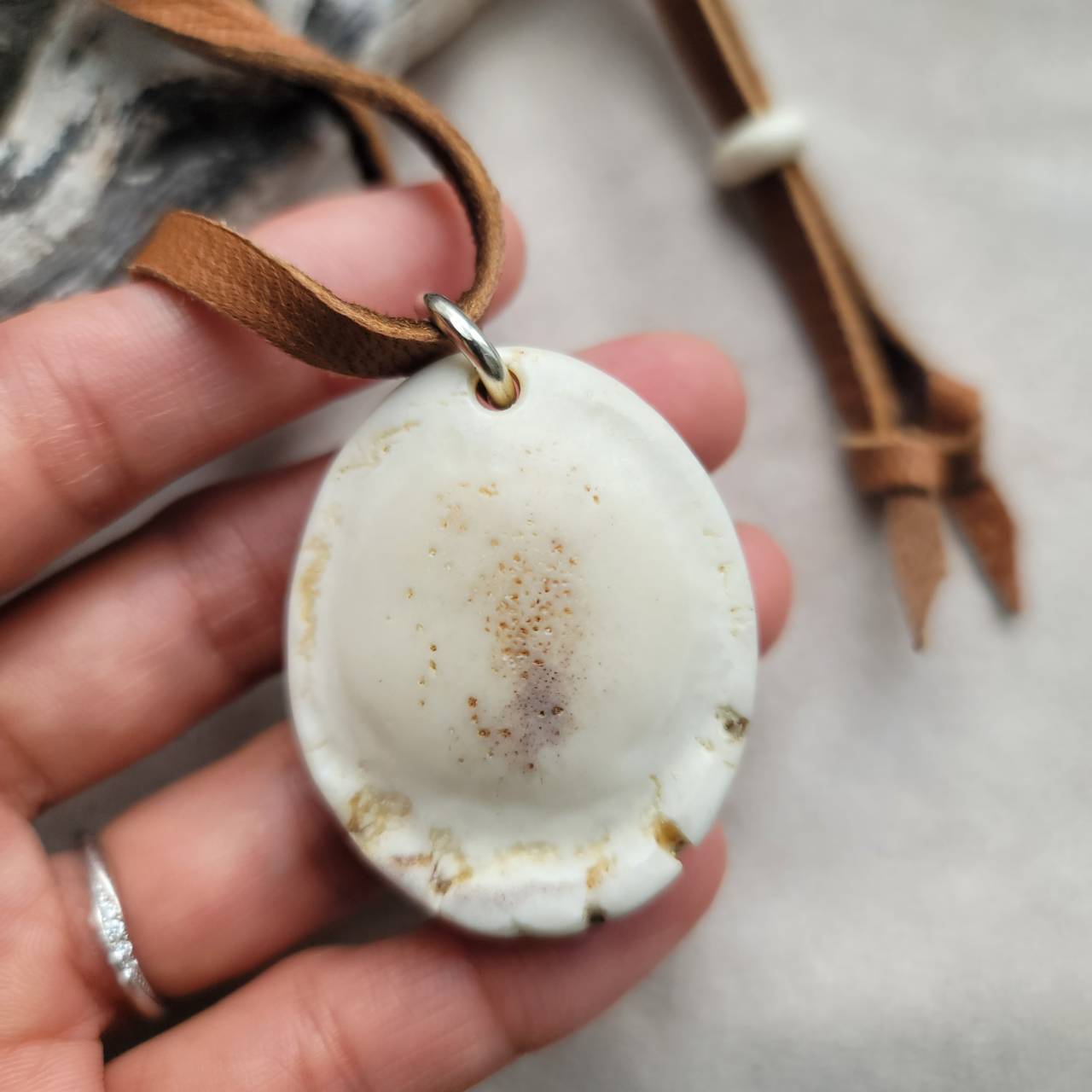 紐は鹿革紐を使用しており、鹿角製ビーズにて長さ調整可能です。