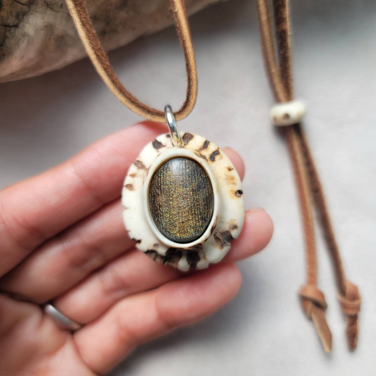 【鹿の角 虹彩珊瑚 ペンダント】になります。