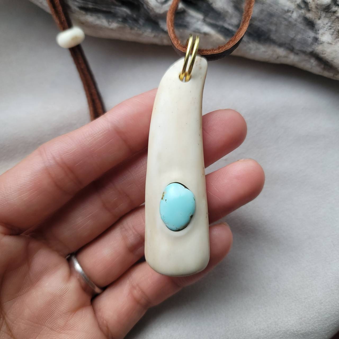 蝦夷鹿の角 ターコイズの角笛ペンダント