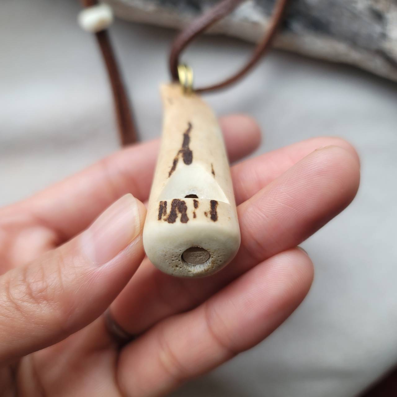 蝦夷鹿の角、端部を使った角笛です。