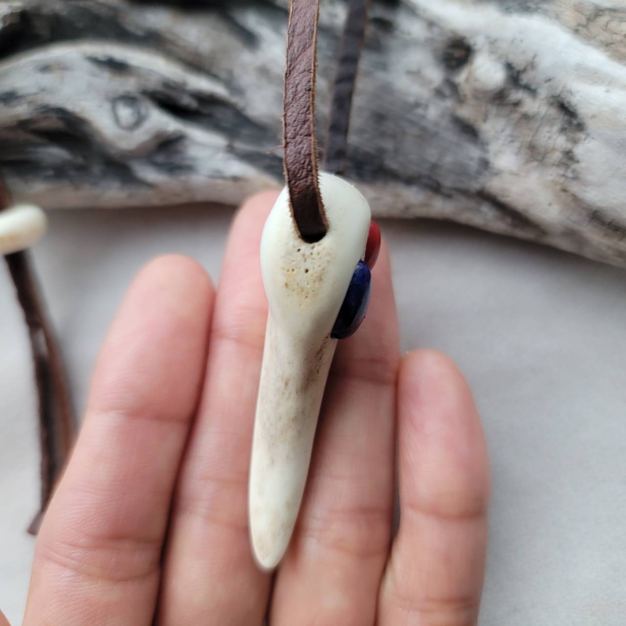 蝦夷鹿の角 ラピスラズリと赤珊瑚のとんがりペンダント
