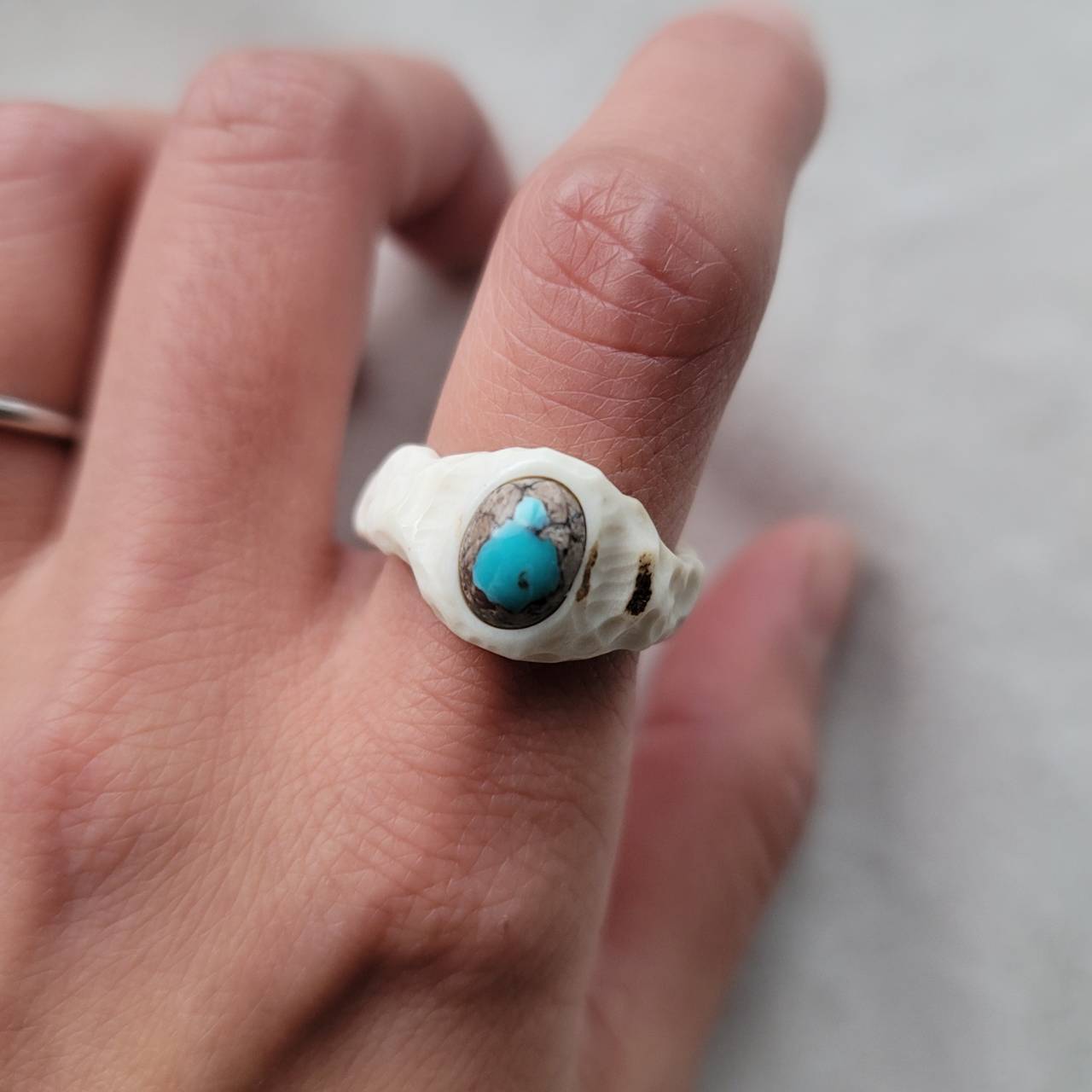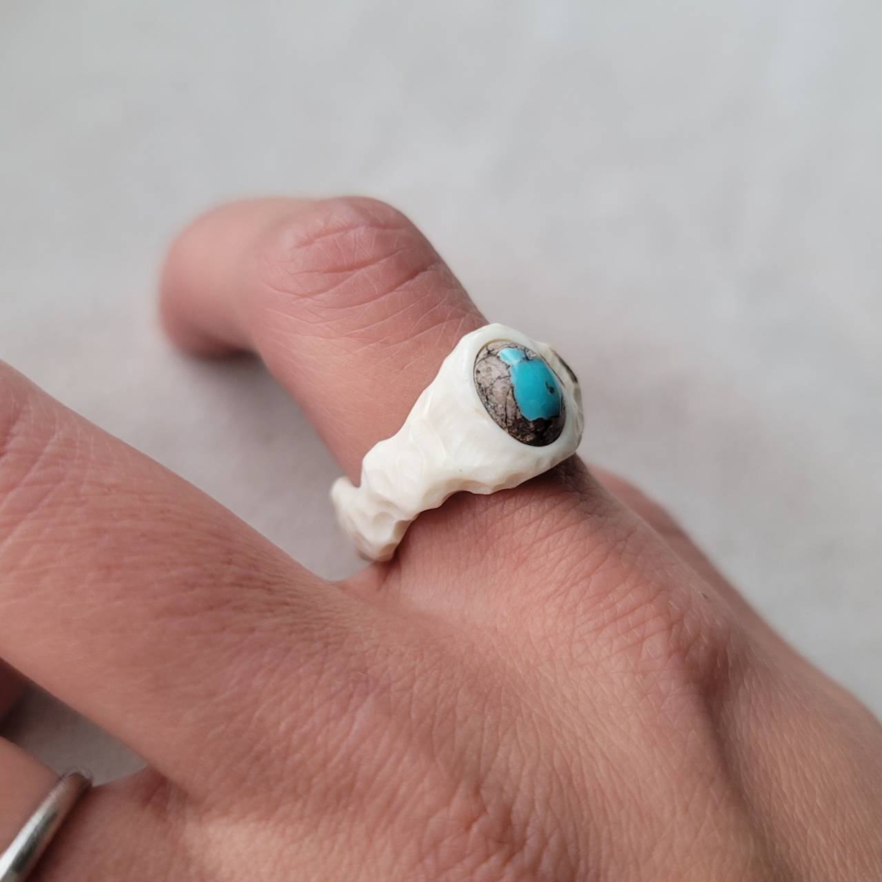 鹿の角 ペルシアンターコイズ変形リング 約13~13.5号
