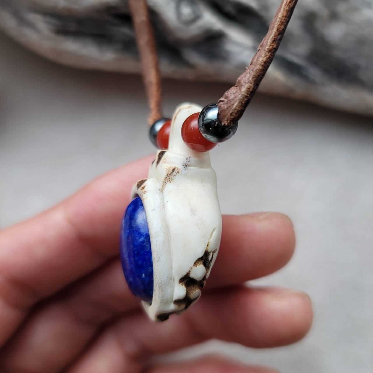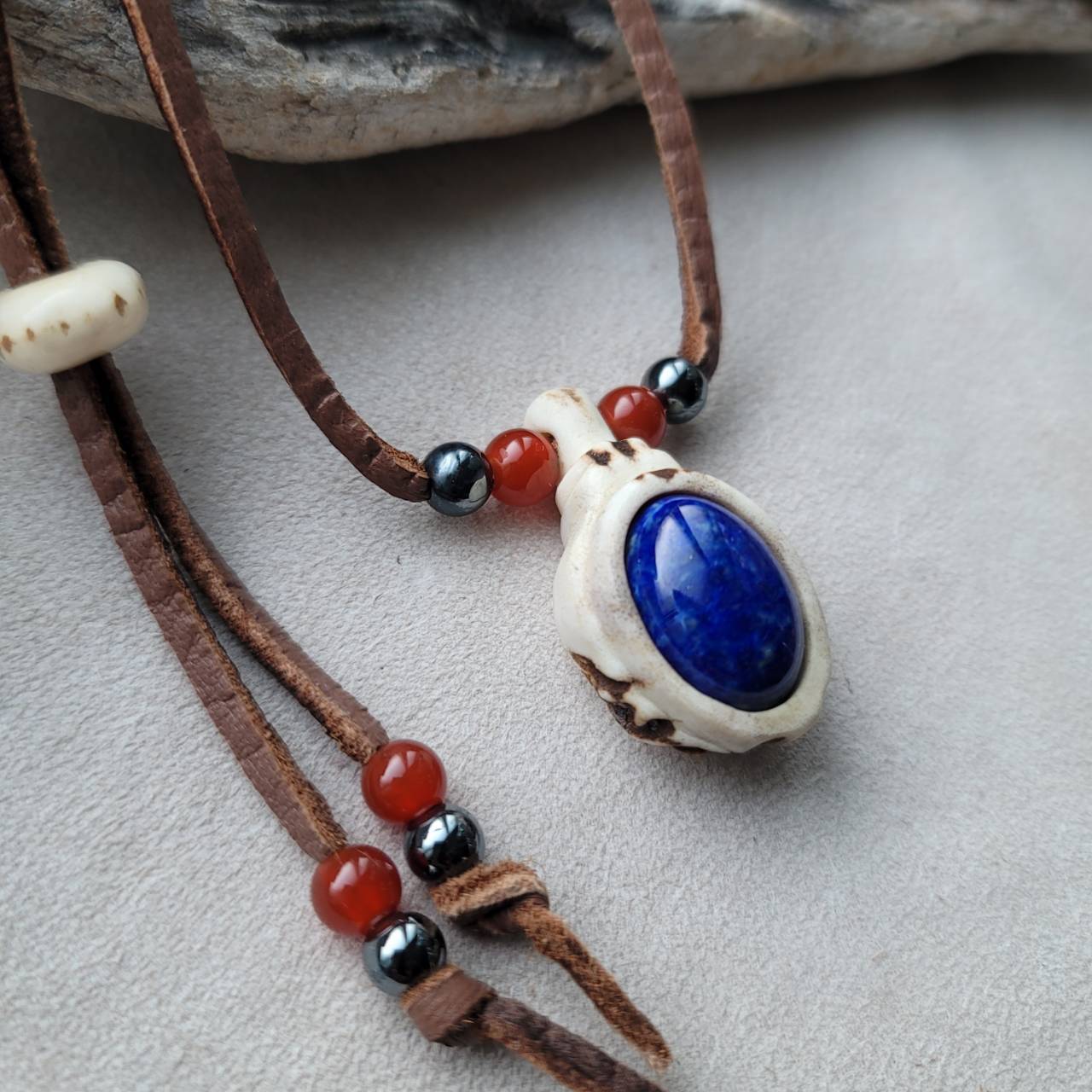 蝦夷鹿の角 ラピスラズリ ペンダント