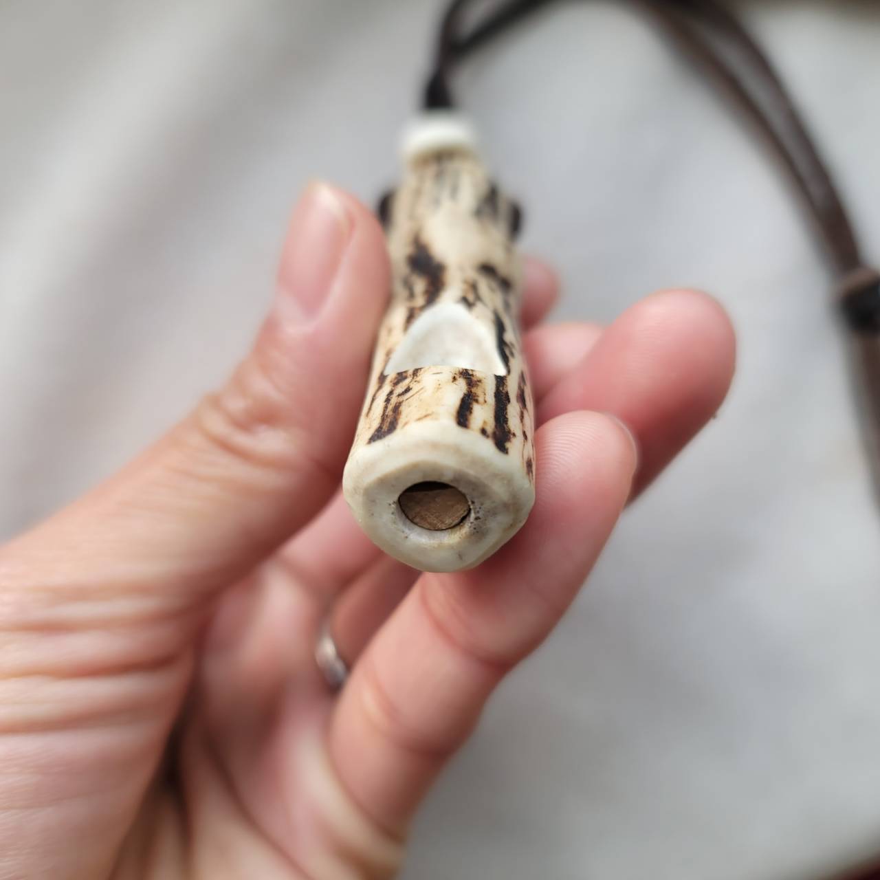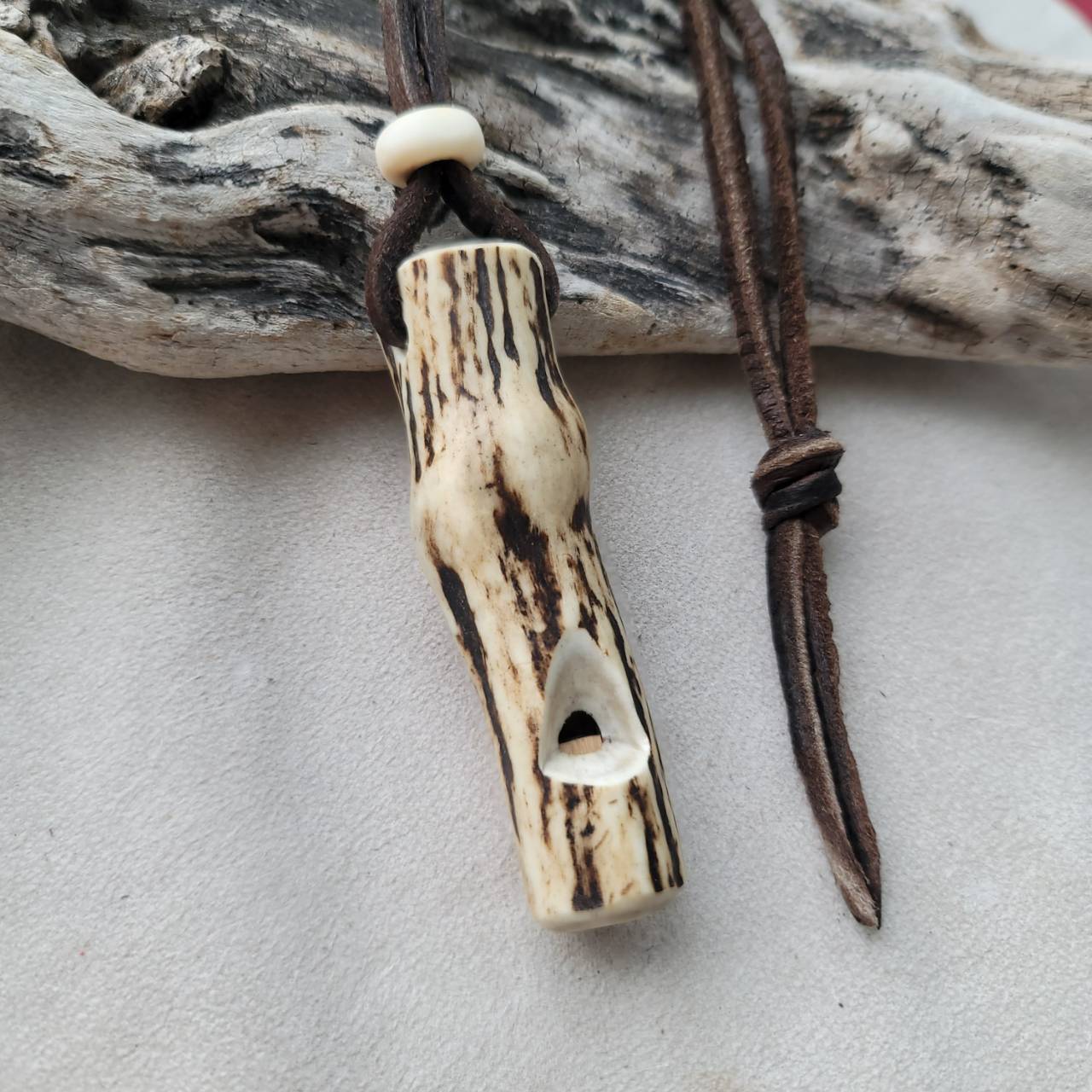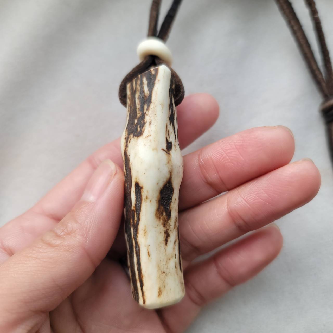 【蝦夷鹿の角笛 革紐ストラップ】になります。
