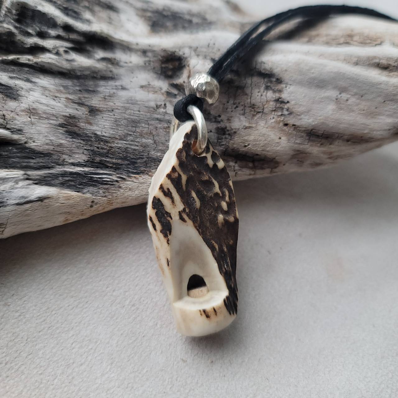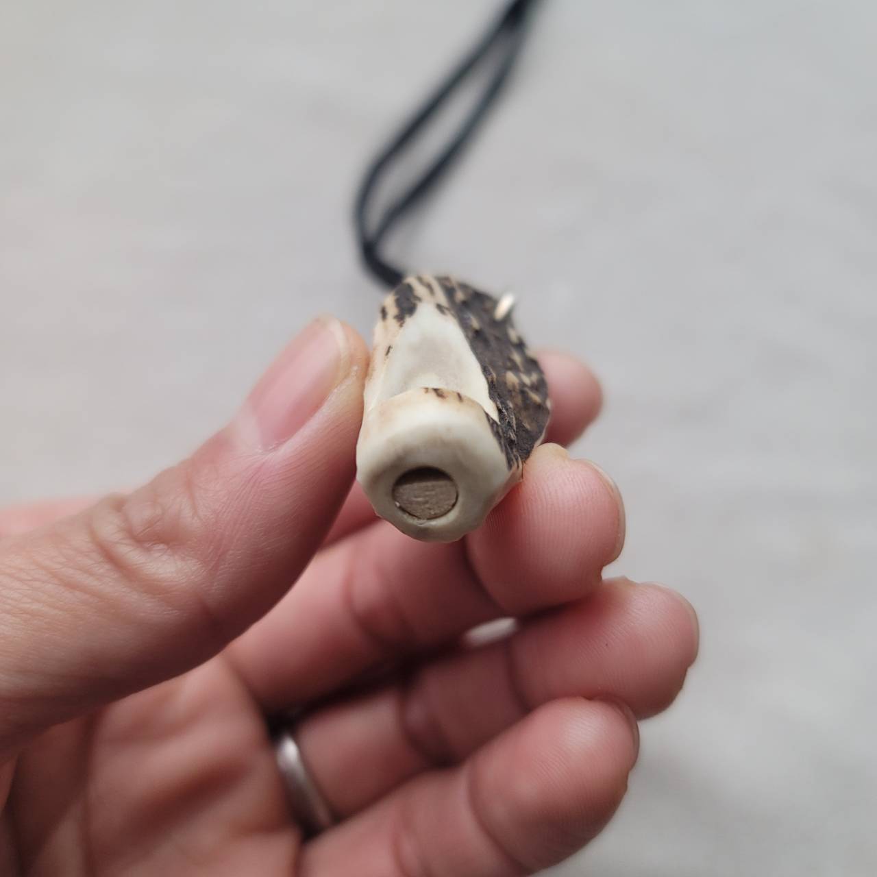 【蝦夷鹿の角笛 ワイルドホース 革紐ストラップ】