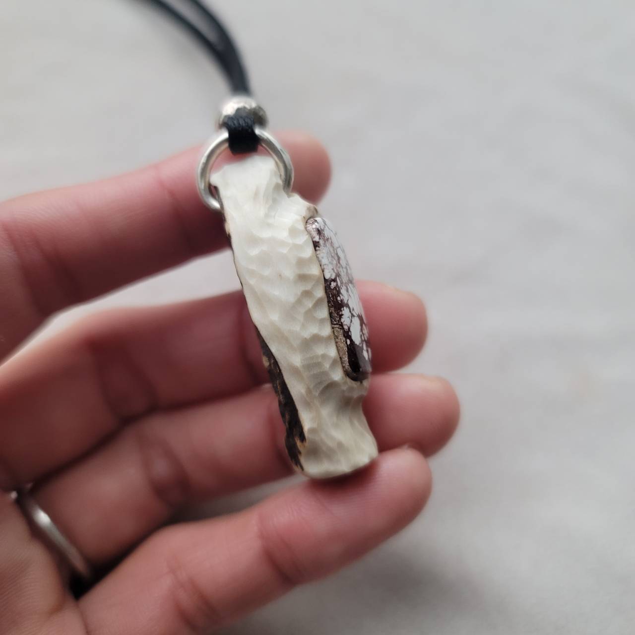 蝦夷鹿の角笛 ワイルドホース 革紐ストラップ