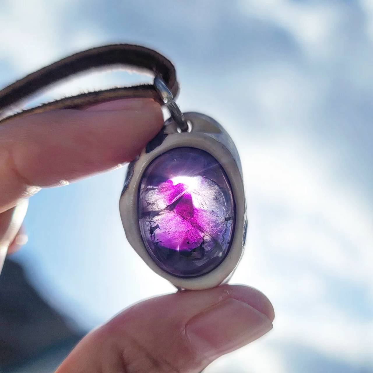 光にかざして天然石を見れるように裏面の一部をくり抜いて制作しています。